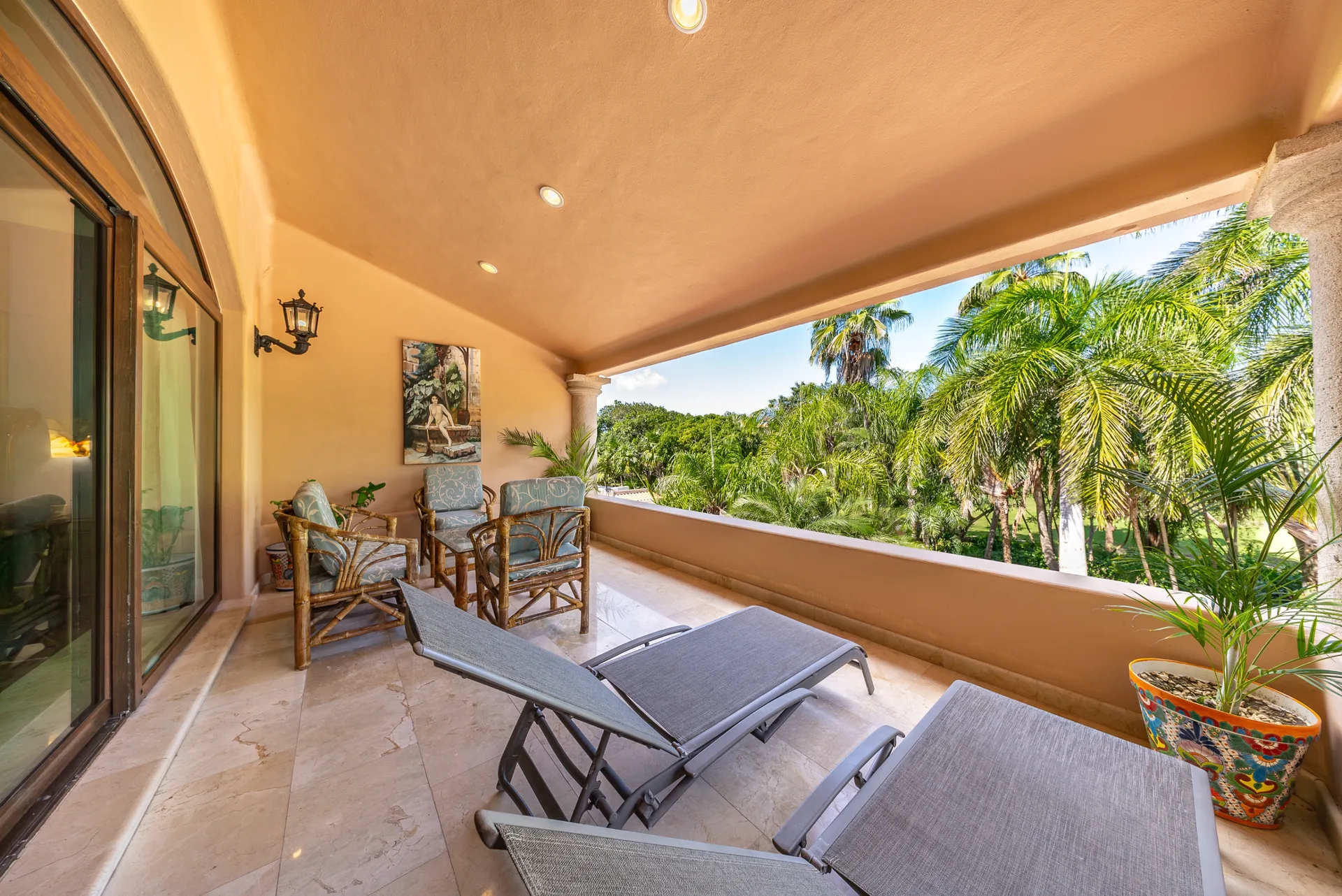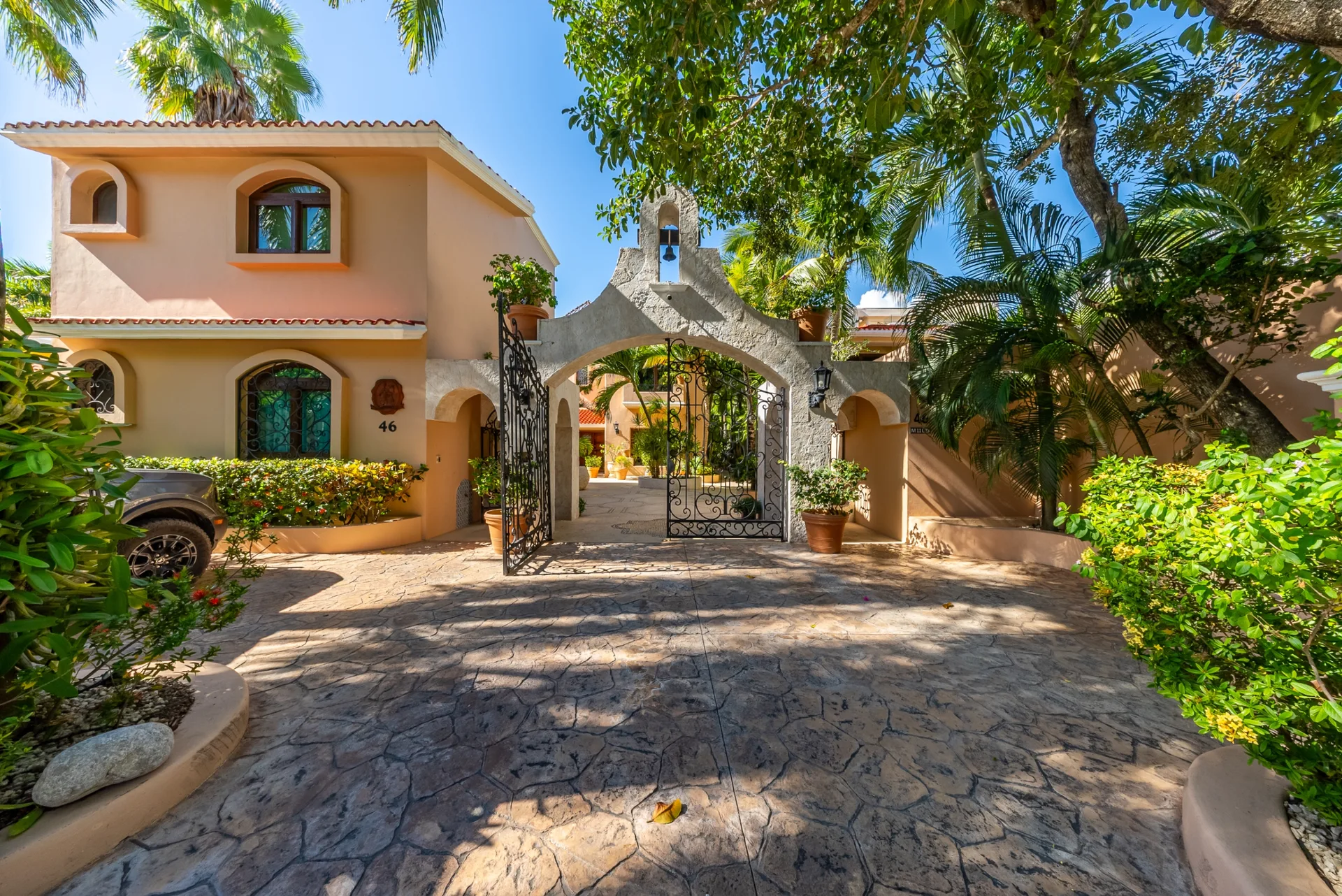 Villa Orquídea is a meticulously crafted estate located in a prime golf-front position within the gated community of Puerto Aventuras. Handcrafted wrought iron gates and sculpted stone masonry open into a refined entrance courtyard. Mature tropical gardens with palms and birds of paradise surround the home, creating privacy and a tranquil atmosphere.