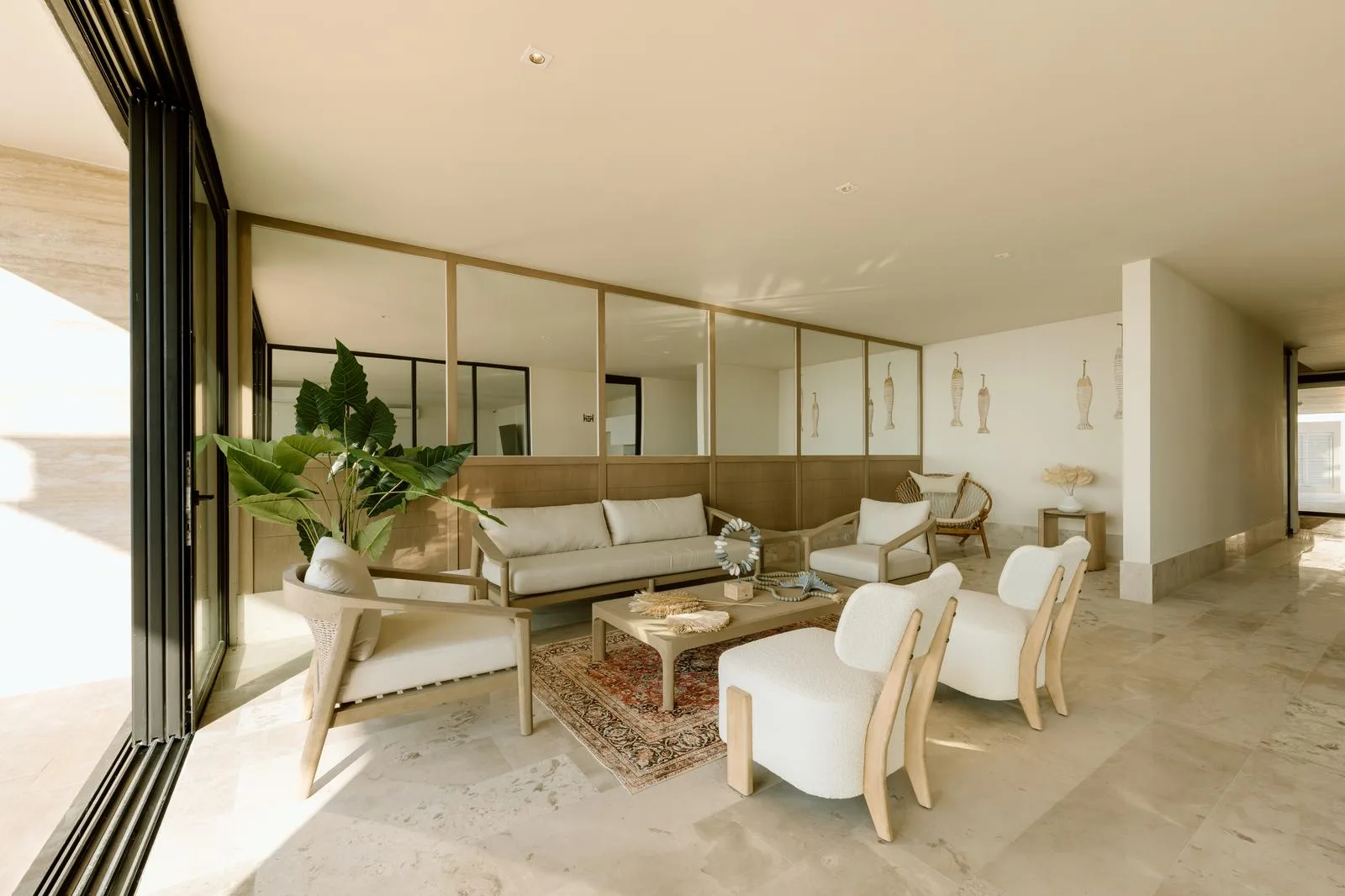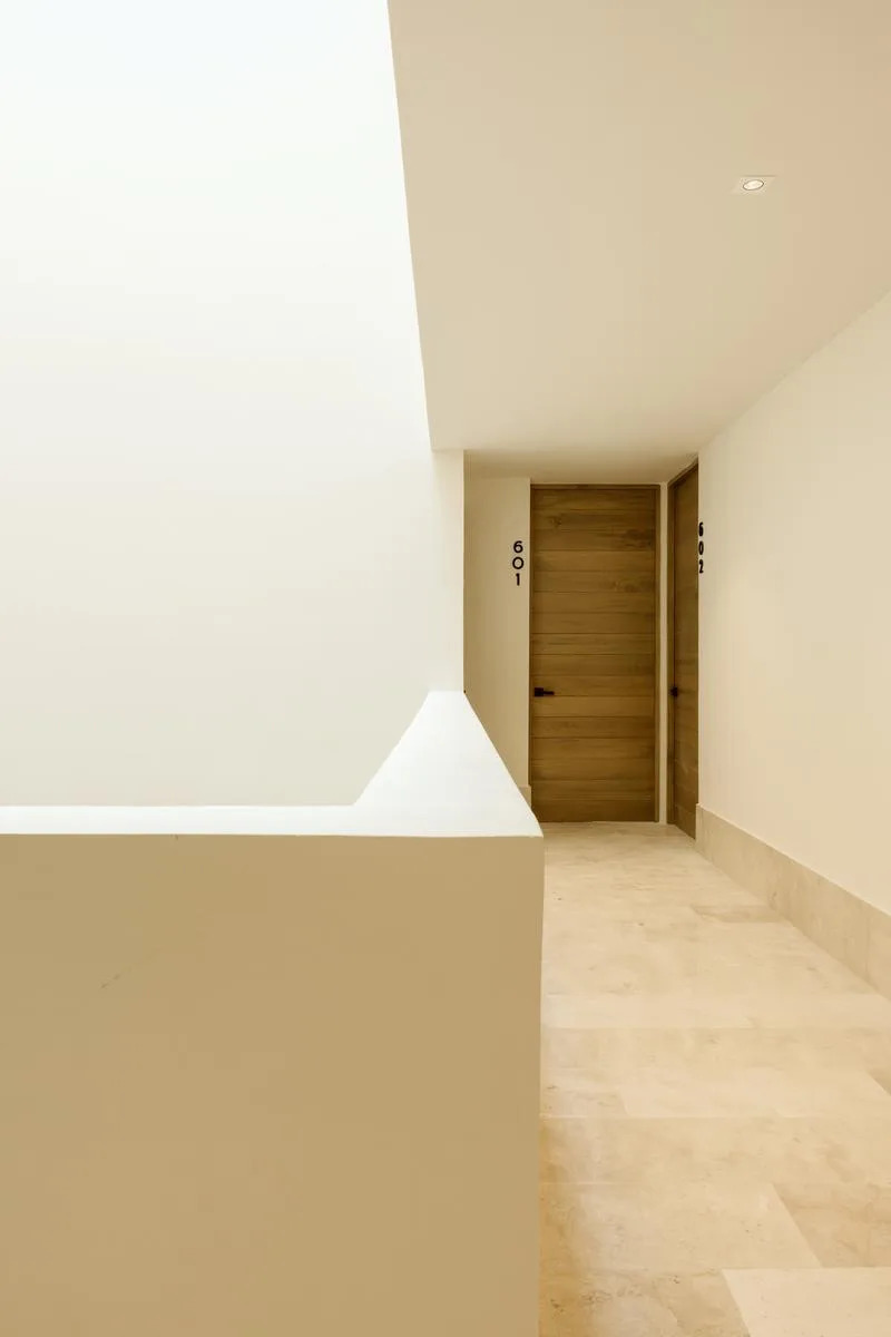 This beachfront apartment is situated in Puerto Morelos, Riviera Maya, featuring design with local materials and views of the Caribbean Sea.