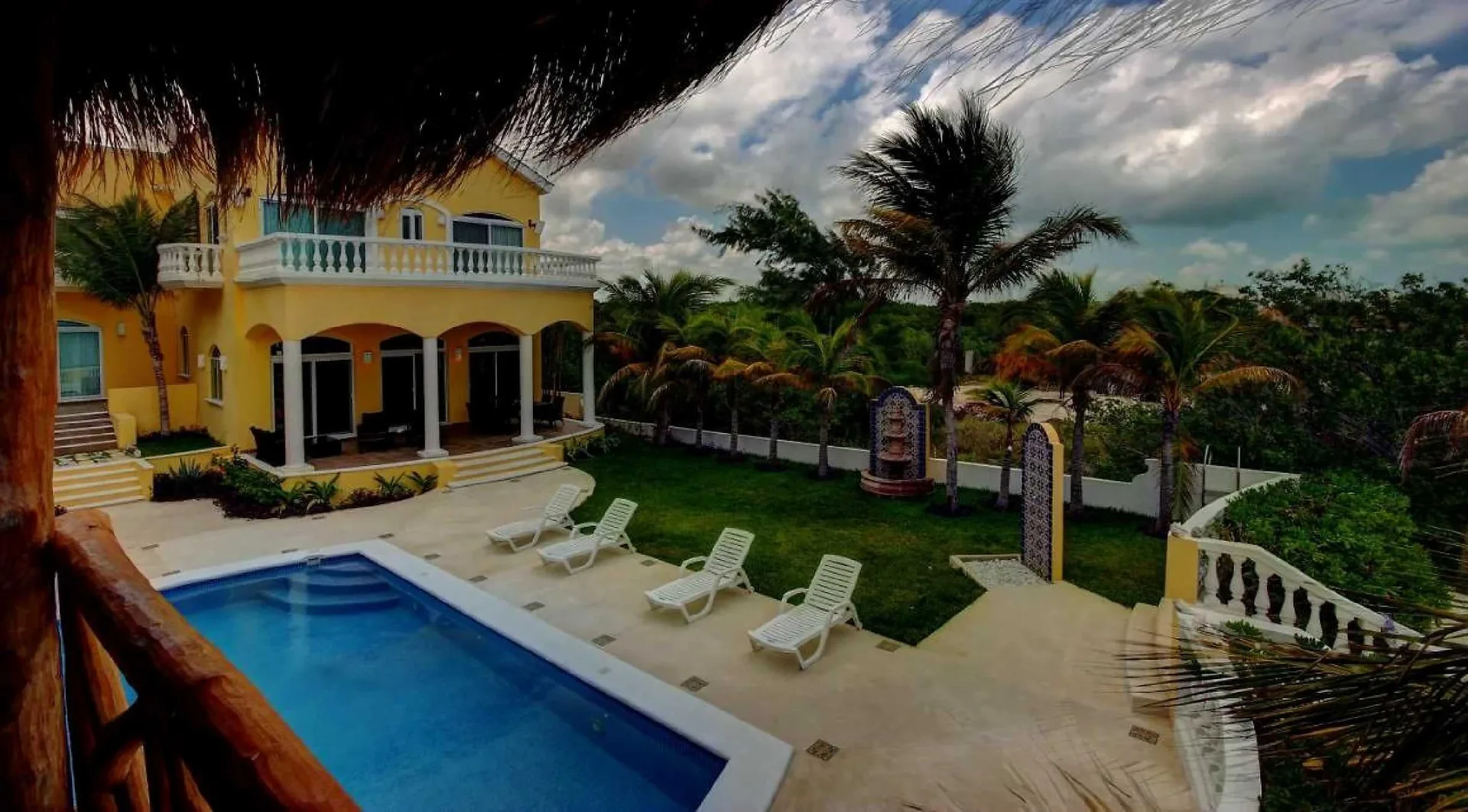 This beachfront property is located on the coast of the Riviera Maya, offering direct access to a soft white sand beach and views of the Caribbean Sea.