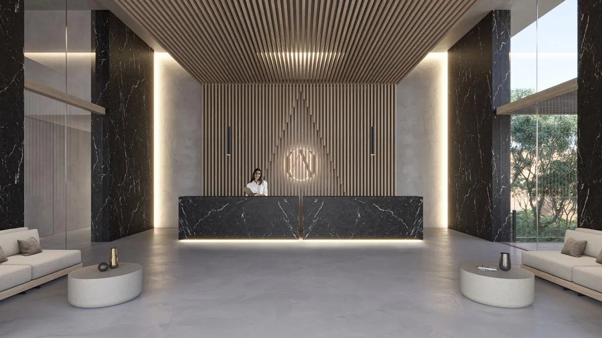 The development offers a comprehensive set of amenities, including a beachfront infinity pool, beach and pool cabins, a swimming lane, a sky terrace with a bar, a gym, paddle courts, a restaurant, a coworking space, and meeting rooms. The complex has controlled access and 24-hour security. Additional features include a hotel-style lobby, concierge services, room service, and valet parking. Water activities such as kayaking and paddleboarding are available for residents and guests.