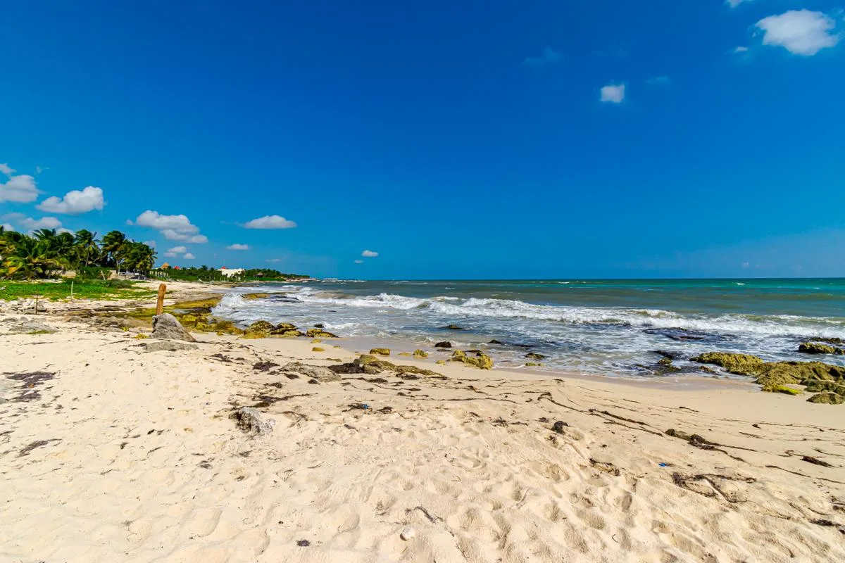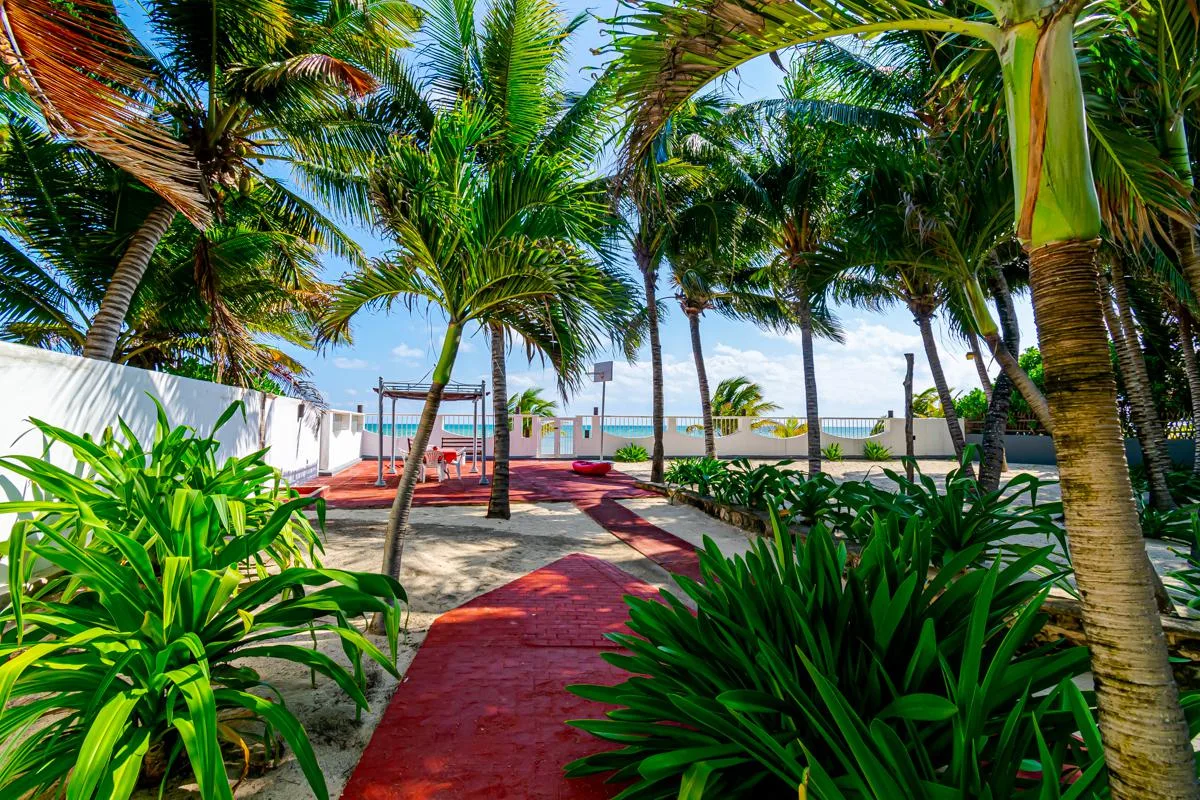 This spacious property is situated directly on the Caribbean Sea in Playa del Secreto. Playa del Secreto is located next to Puerto Morelos, approximately 20 minutes from Cancún International Airport and 20 minutes from Playa del Carmen. The area is known for its peaceful atmosphere, white sand beaches, and privacy, with few permanent neighbors and a primarily vacation-oriented environment. The land use is mixed, allowing for potential hotel conversion.