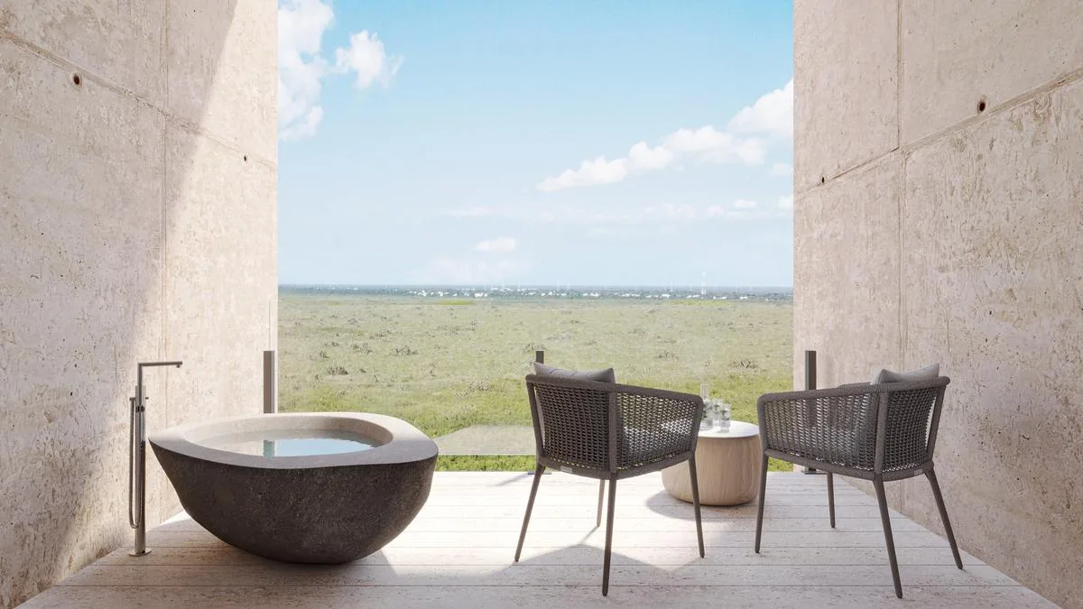 The development is situated on the Caribbean Sea in Puerto Morelos, Quintana Roo, within the Riviera Maya. It incorporates contemporary design and sustainable criteria, utilizing natural materials, cross ventilation, energy efficiency, and open spaces with panoramic sea views.