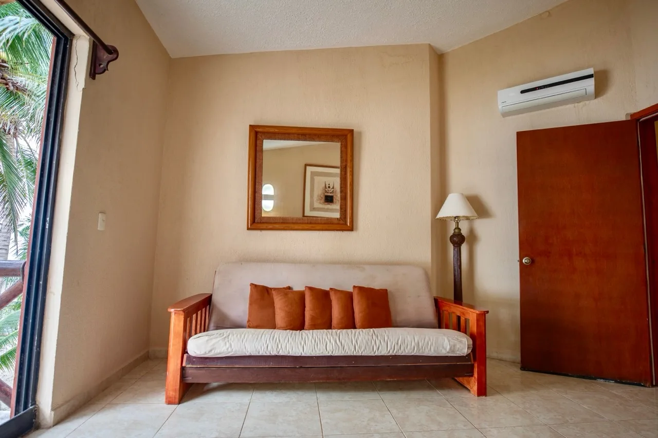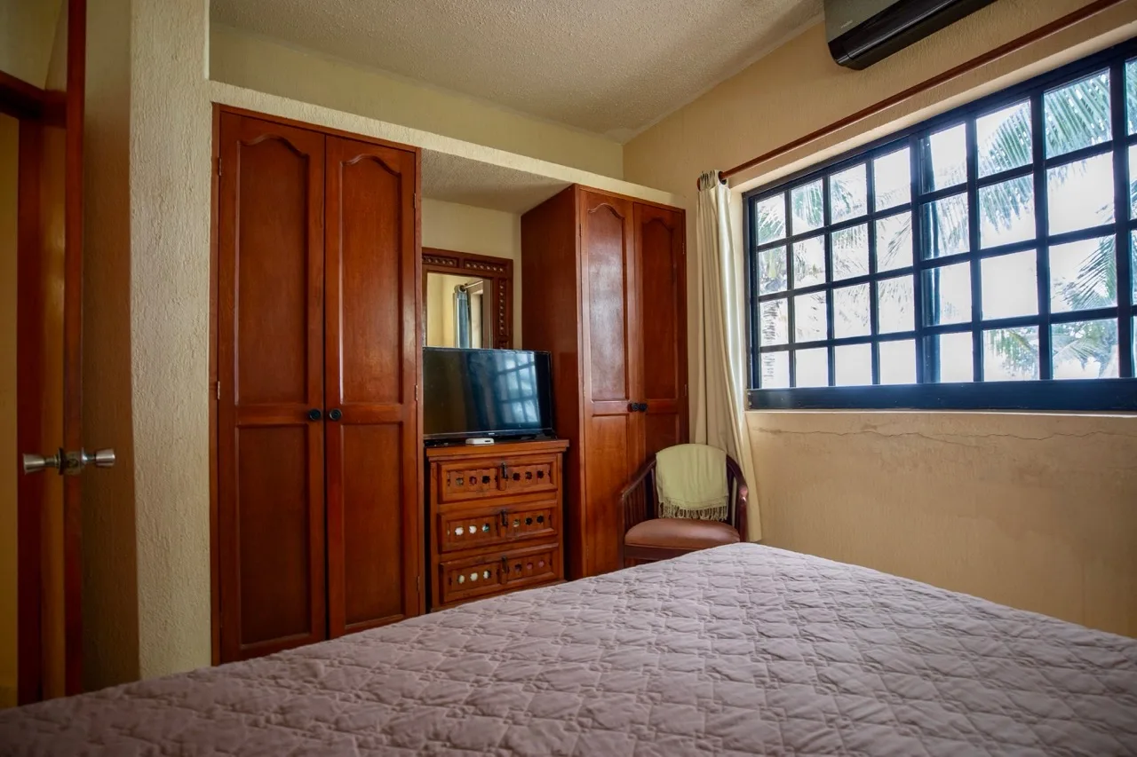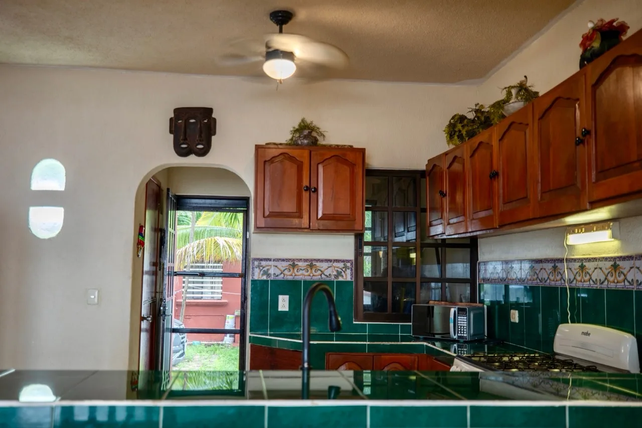 This beachfront villa in Puerto Morelos is located just steps from the turquoise waters of the Caribbean. The residence is spread over two levels and features three well-sized bedrooms and three full bathrooms.