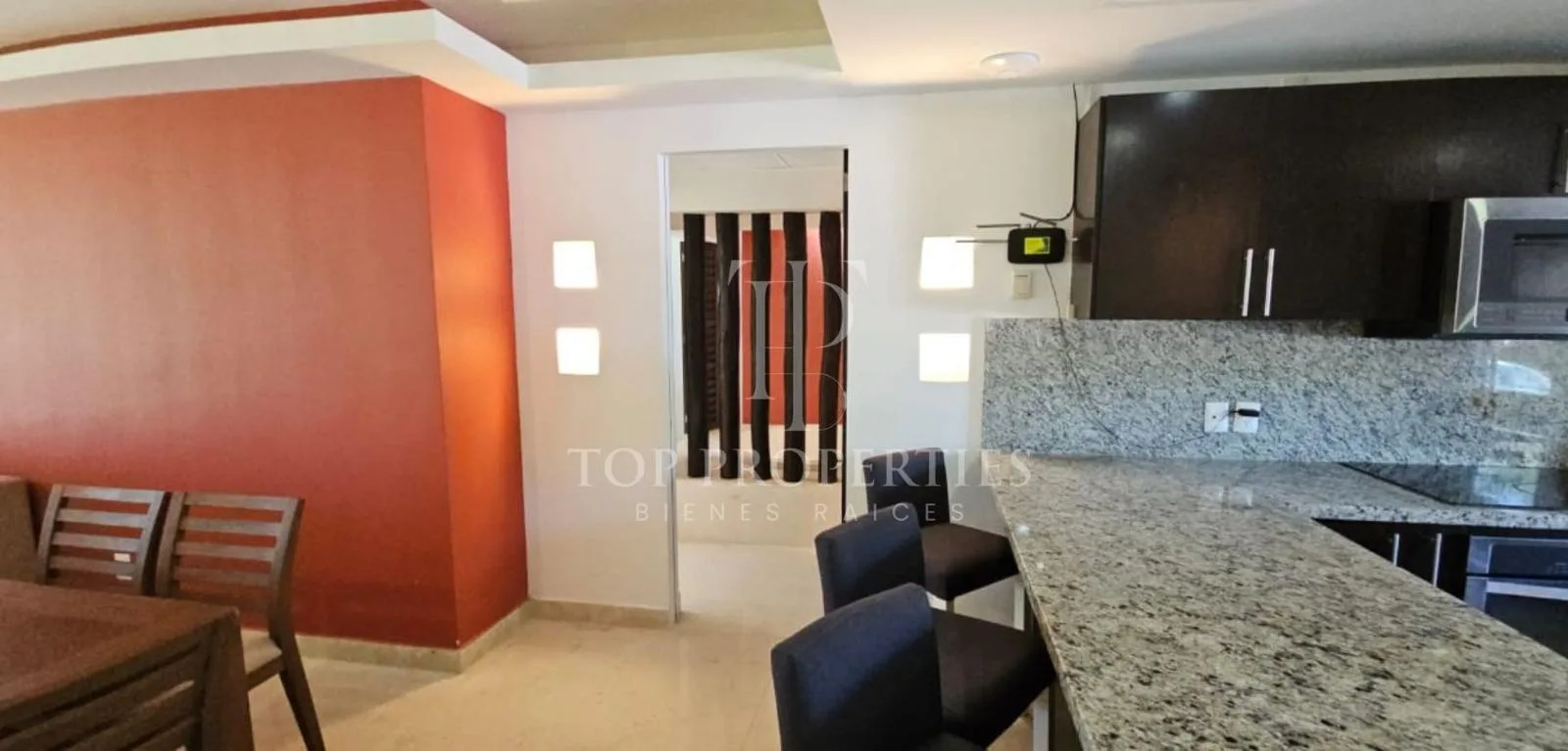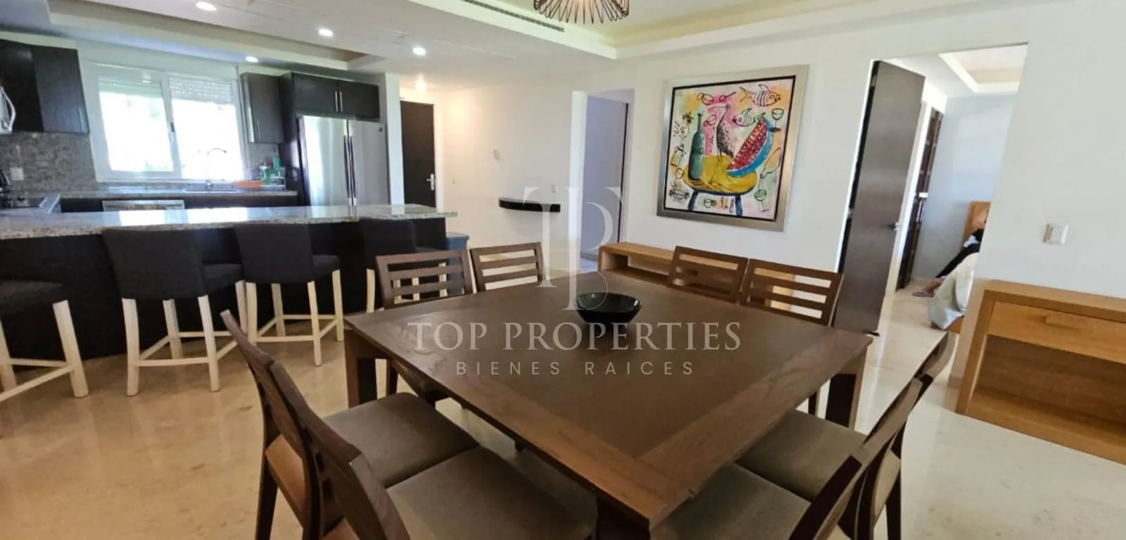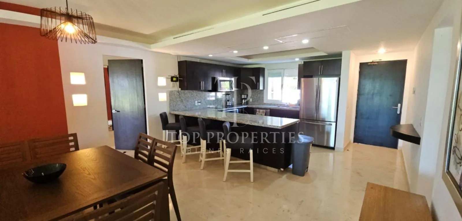 The condominium is situated in Bahia Petempich and offers communal amenities including a swimming pool, security, a lobby, a gym, and an elevator. It provides direct access to the sea. The location is approximately 7 minutes from the tourist zone of Puerto Morelos, 15 minutes from Cancun International Airport, 30 minutes from downtown Cancun, 10 minutes from a large outlet mall, 15 minutes from the Puerto Morelos Maya Train station, and 30 minutes from Playa del Carmen.