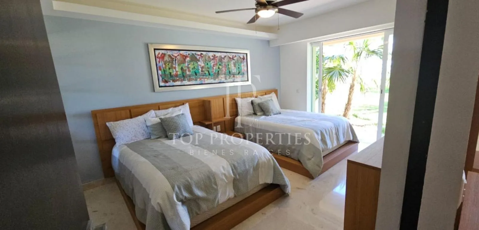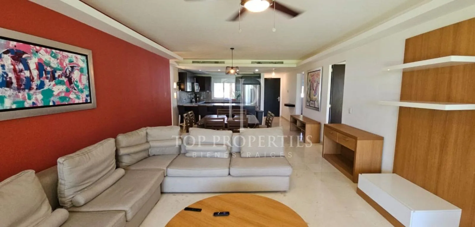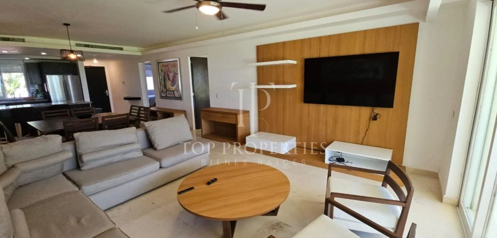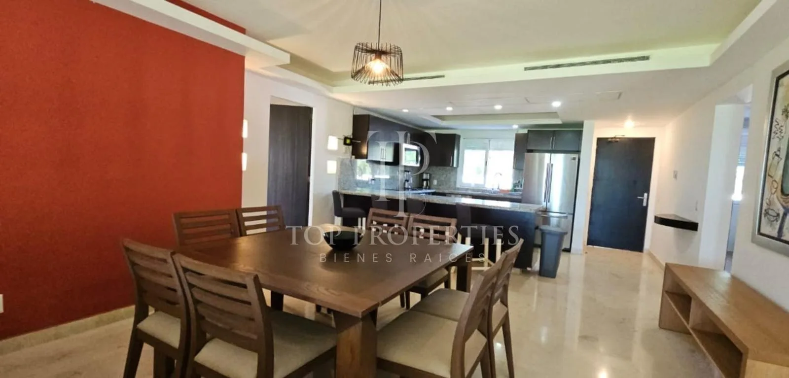 This furnished 138-square-meter apartment is located on the ground floor and faces the ocean in Puerto Morelos, Quintana Roo. The unit consists of three bedrooms and two full bathrooms.