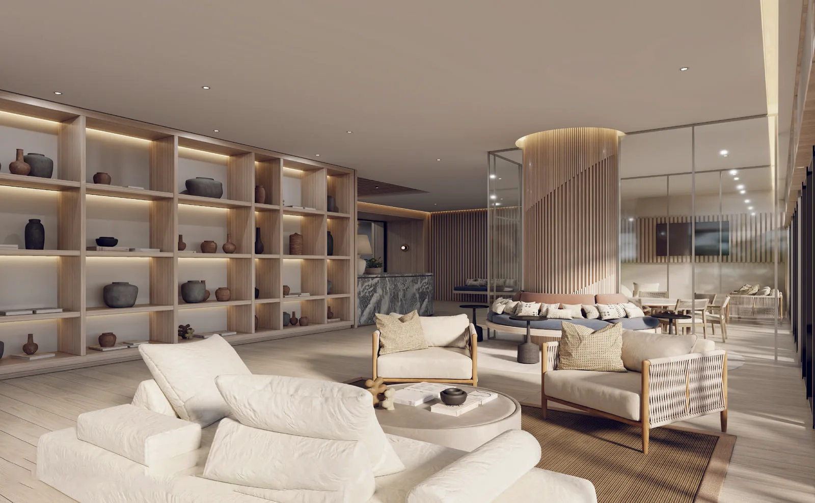 The development provides premium resort-style amenities. A rooftop area offers ocean views, a swimming pool, and a pool bar. There is exclusive access to a private beach. Outdoor areas include fire pits and a BBQ zone for gatherings. The building features a fully-equipped gym, a lobby with 24/7 security and CCTV surveillance, and a meeting room suitable for home office use or events. Conveniences include parking for cars and bicycles, elevators, and a pet-friendly policy.