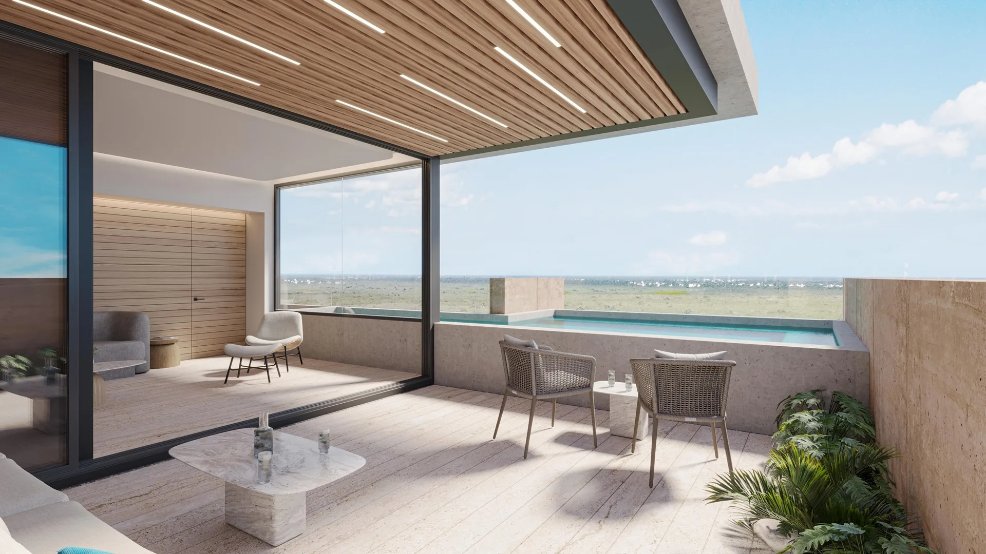 These luxury apartments are situated directly on the pristine beaches of Puerto Morelos. They offer an exquisite living experience designed with a deep respect for the surrounding ecosystem, incorporating advanced technologies to minimize environmental impact.