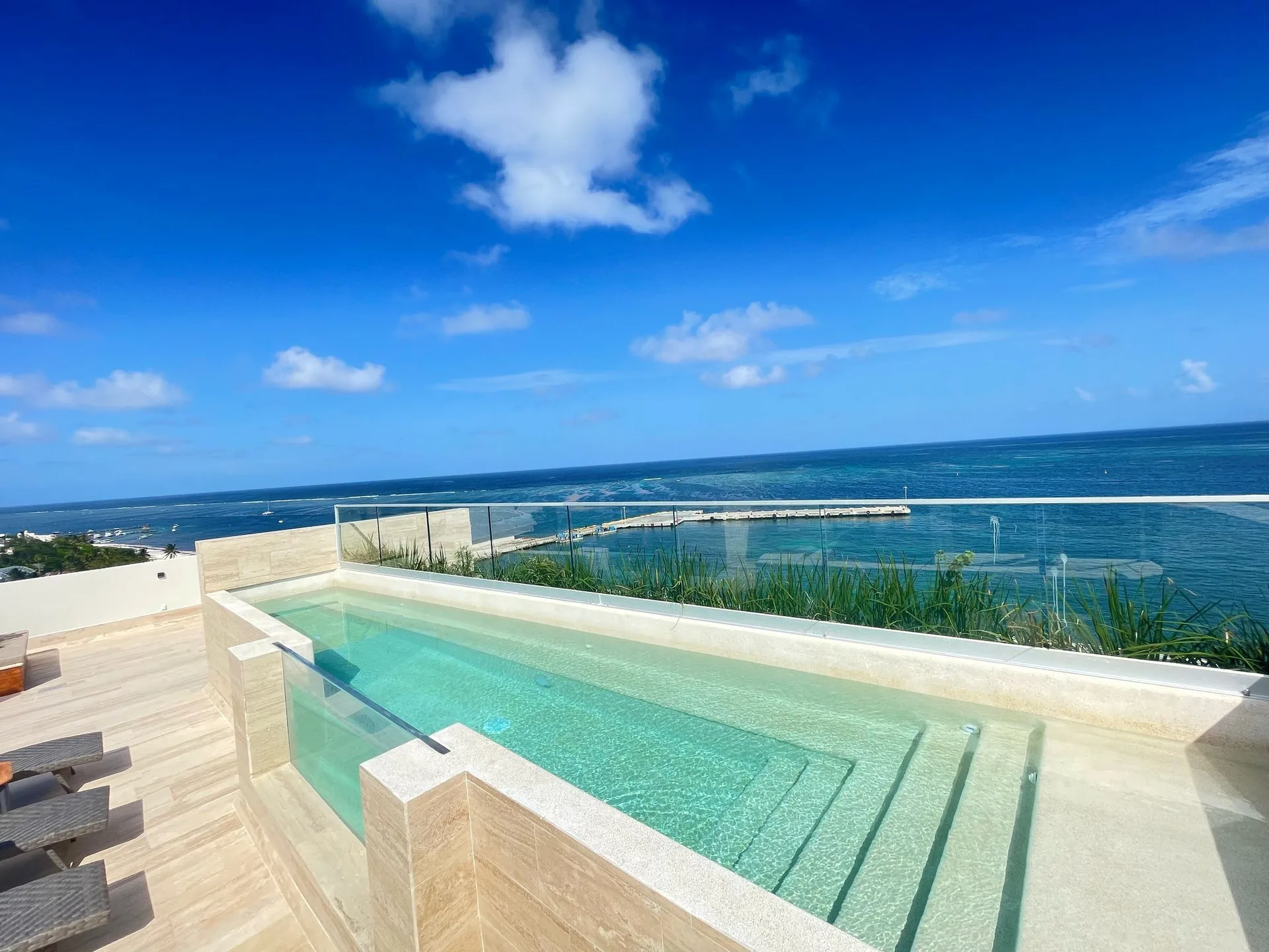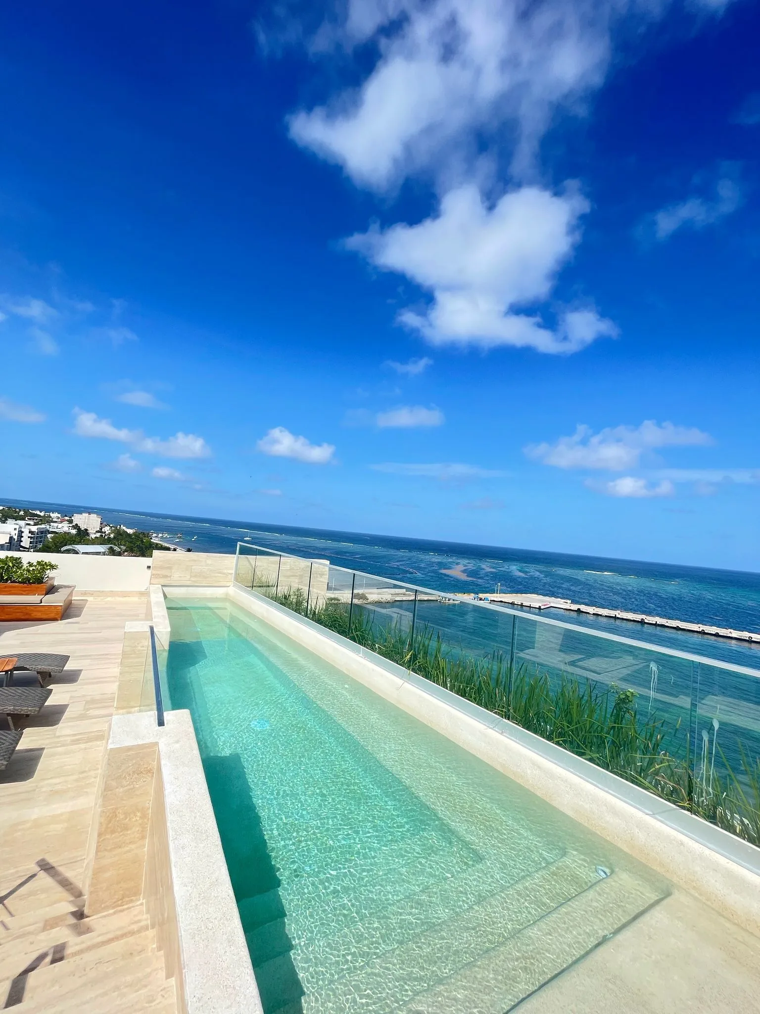 Located directly on the coastline of Puerto Morelos, this oceanfront residence offers one of the most impressive views in the entire Riviera Maya. Its elevation guarantees a completely clear, unobstructed view of the Caribbean Sea and the iconic Puerto Morelos pier, providing an uncommon sense of spaciousness, privacy, and natural light.
