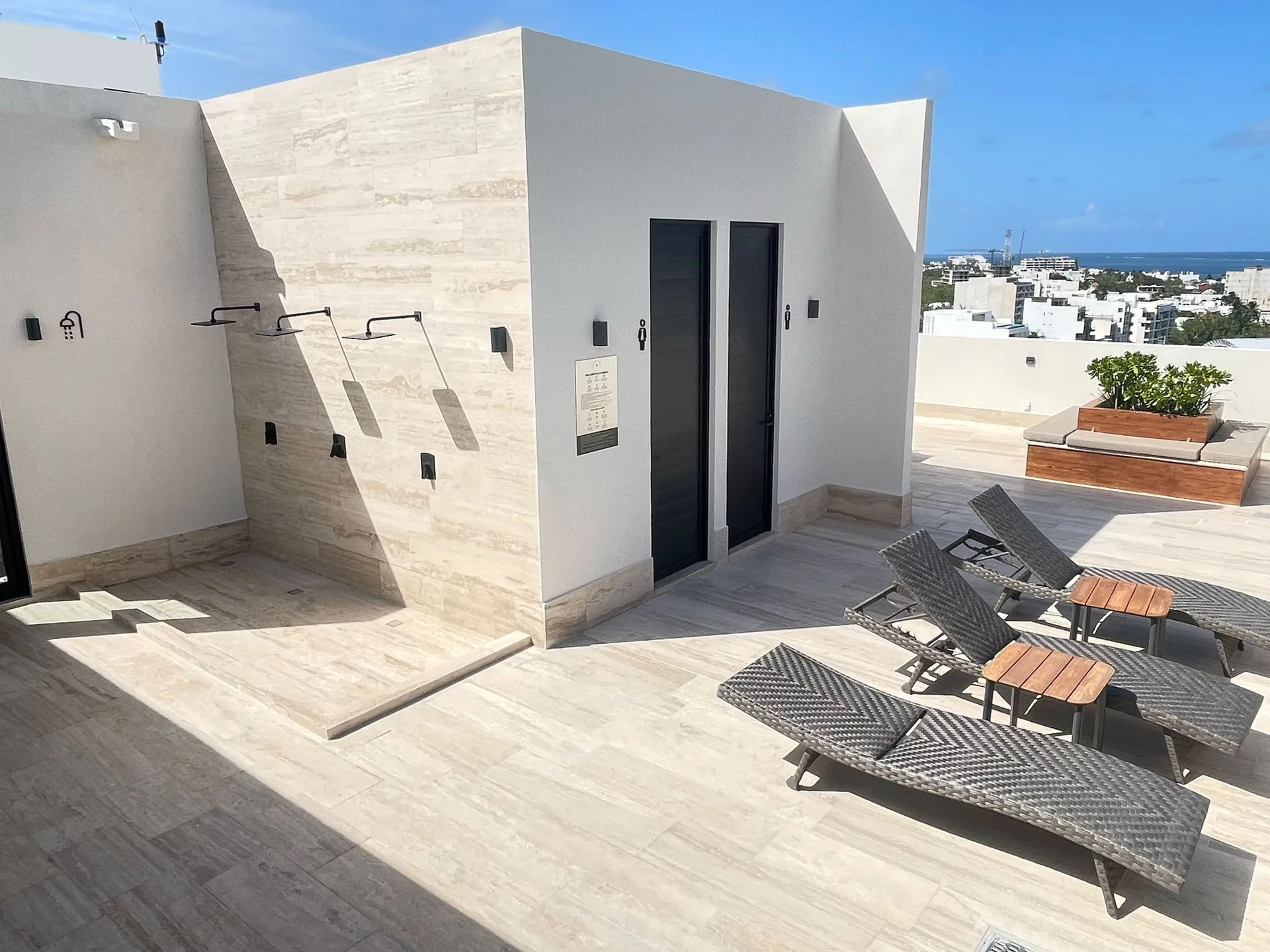 The development offers amenities designed for an uncompromising oceanfront lifestyle. These include a beachfront swimming pool, a rooftop with an infinity pool, private beach access, a gym, a yoga area, social spaces with barbecues, two elevators, private parking, and 24/7 security.