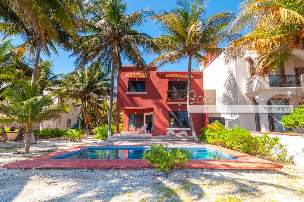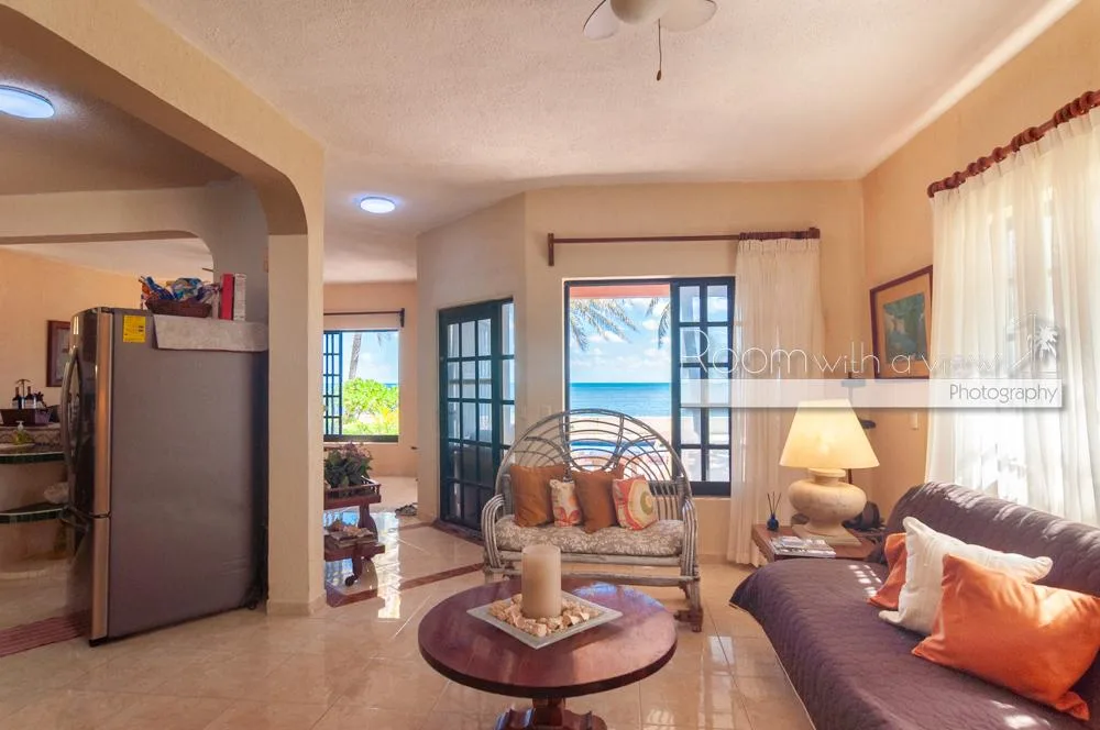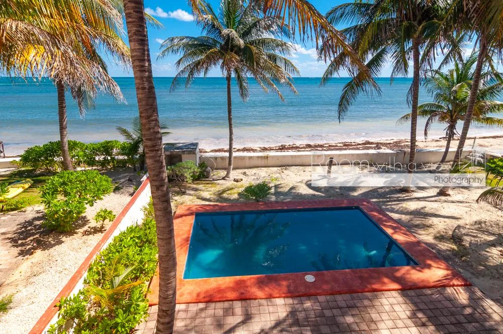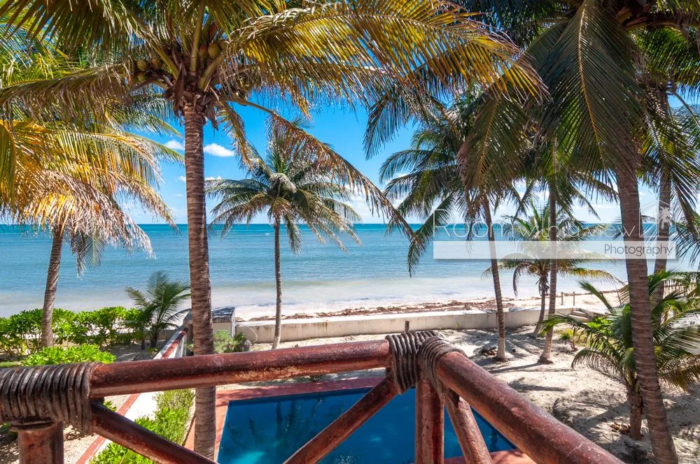 This oceanfront residence offers panoramic views of the Caribbean Sea and benefits from mixed-use zoning. It is situated just north of Puerto Morelos in a quiet coastal setting, approximately halfway between Cancún and Playa del Carmen and about 30 minutes from the airport.