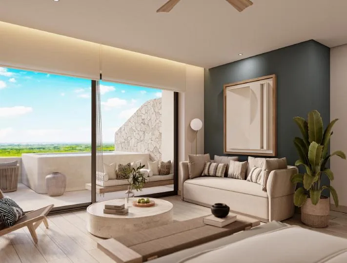 This elegant apartment totals 114. 84 square meters, with 79. 40 square meters of interior space and a 35. 44 square meter private terrace. It is positioned directly on the beach in Puerto Morelos.