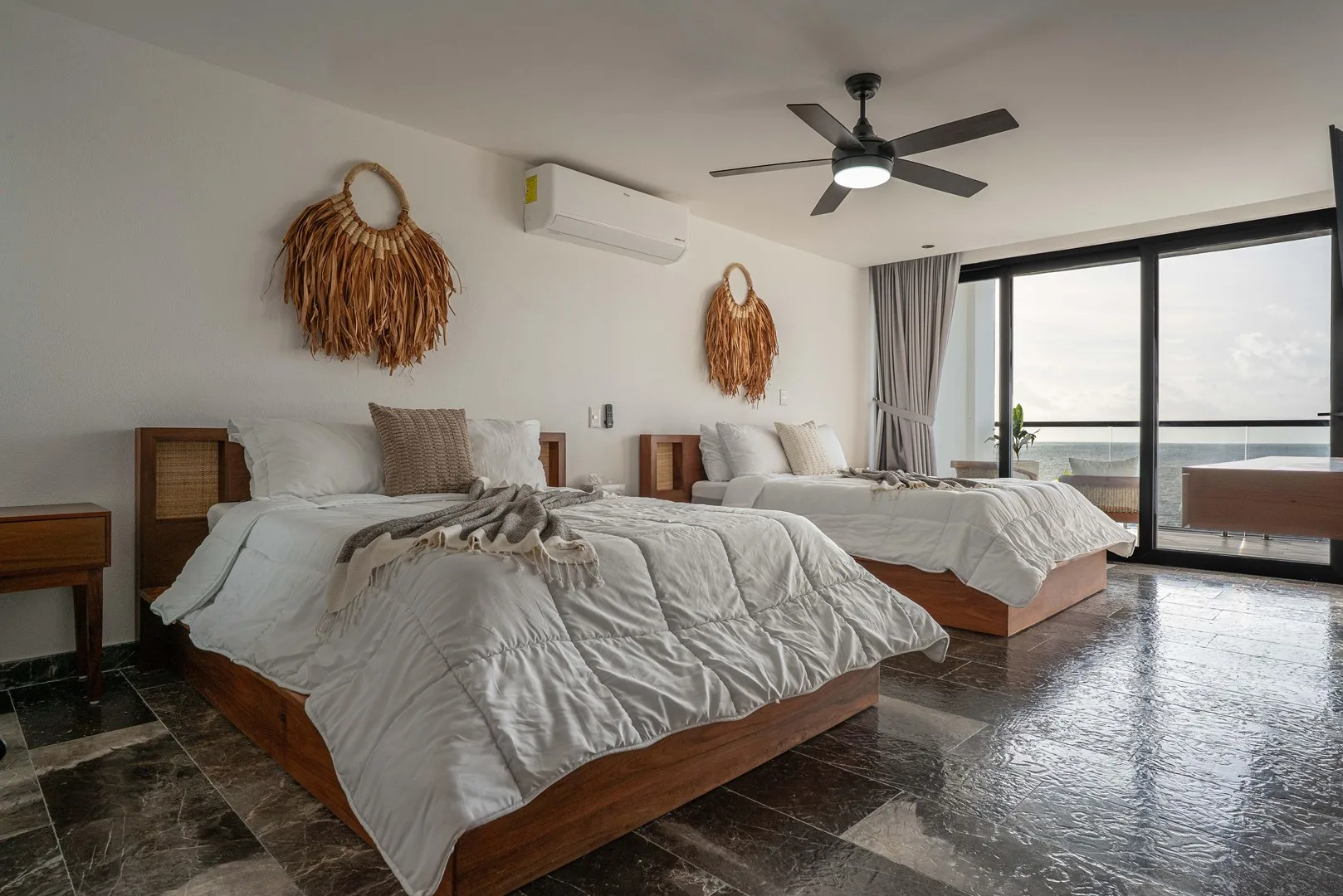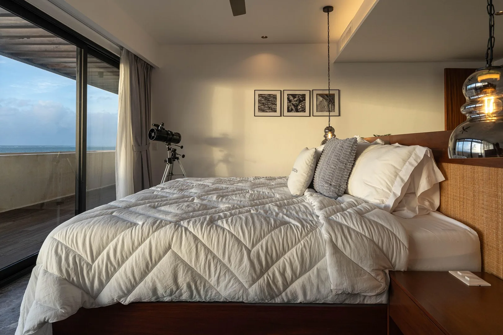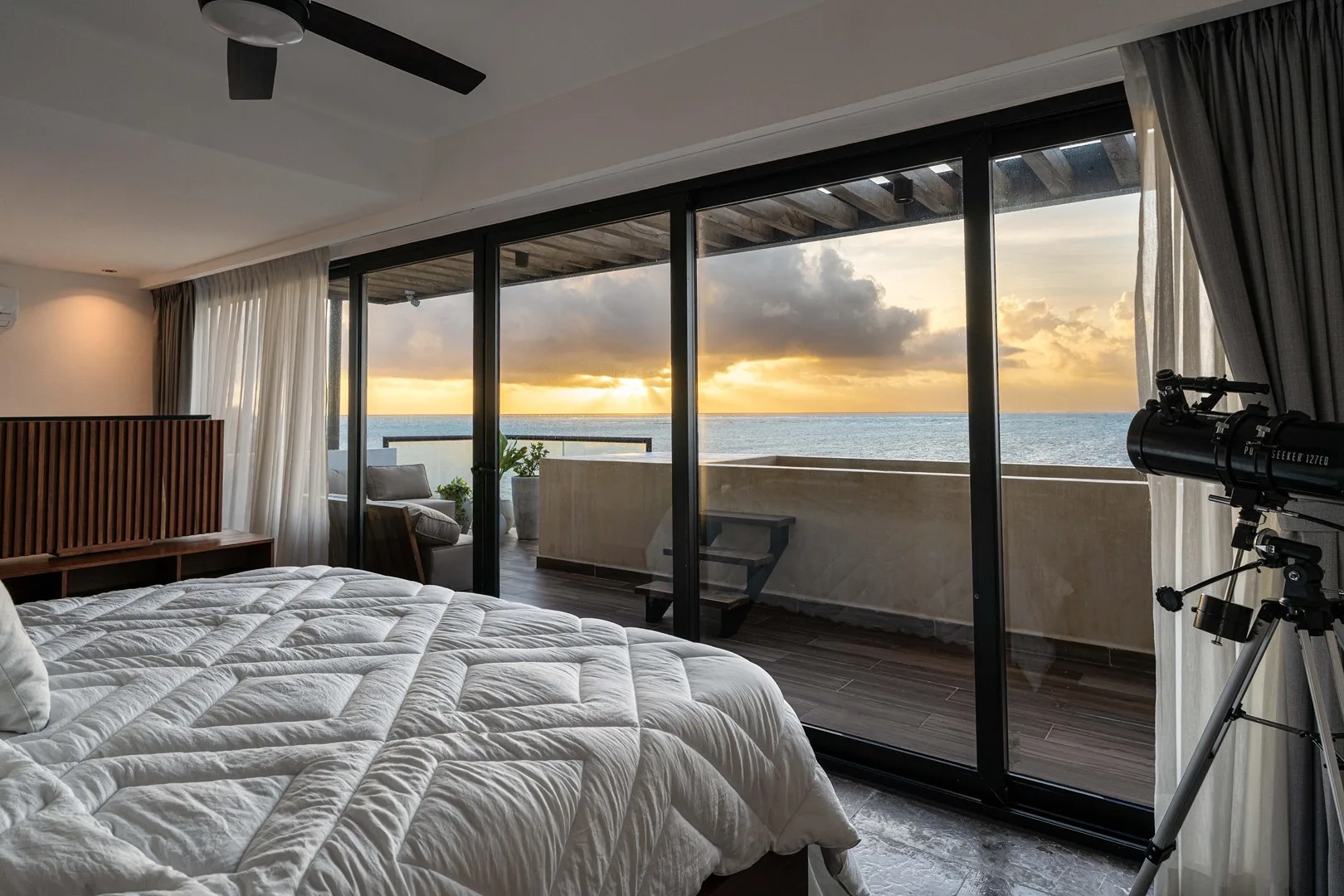 This property is a beachfront sanctuary located along the pristine shores of Puerto Morelos. The home offers panoramic ocean views and a lifestyle in harmony with its tropical surroundings.
