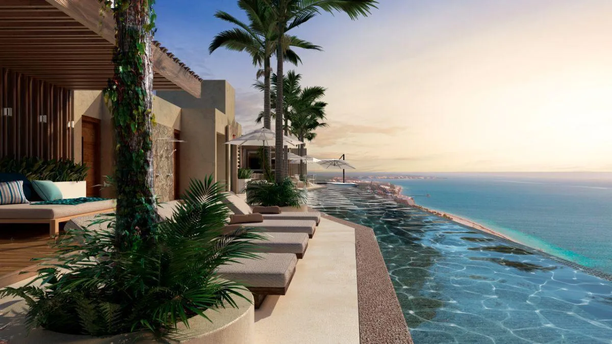 The Alux 33 development in Puerto Morelos offers 44 luxury loft apartments, each measuring 50 square meters. The property is situated approximately 200 meters from the Caribbean Sea, with nearby restaurants, bars, and supermarkets.