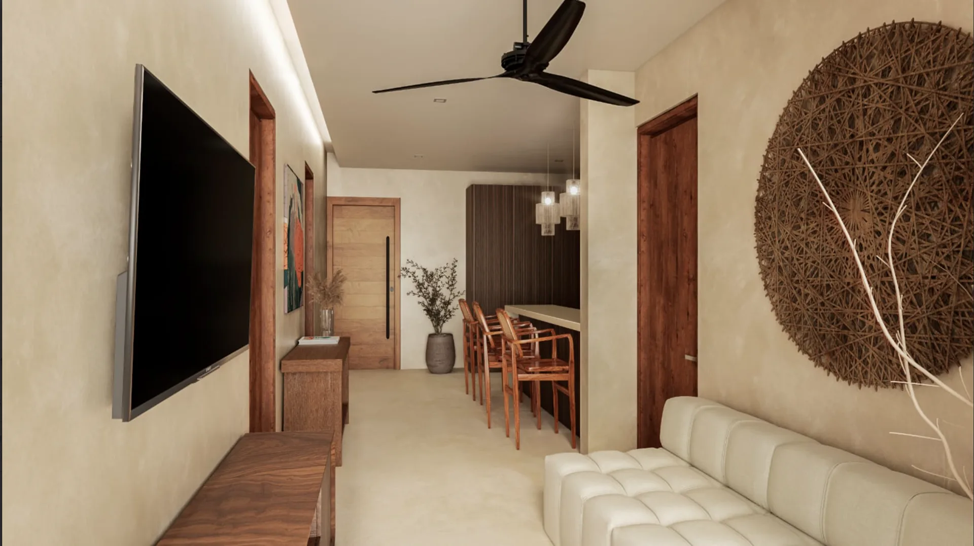 These apartments for sale are located just a few steps from the beach in Puerto Morelos, Quintana Roo, Mexico, offering incredible views of the Caribbean Sea. The property is situated in the vibrant heart of the Riviera Maya, within an enchanting coastal town that combines the serenity of an authentic fishing village with the appeal of an exclusive tourist destination.