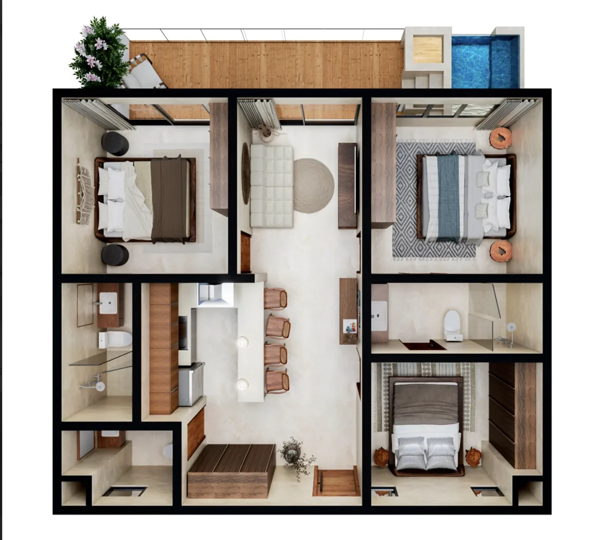 1 to 3 Bedroom Apartments in Puerto Morelos with Ocean Views and Rooftop Amenities