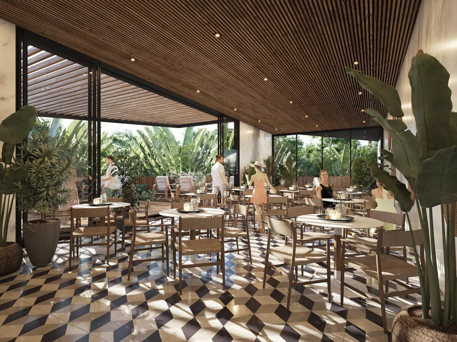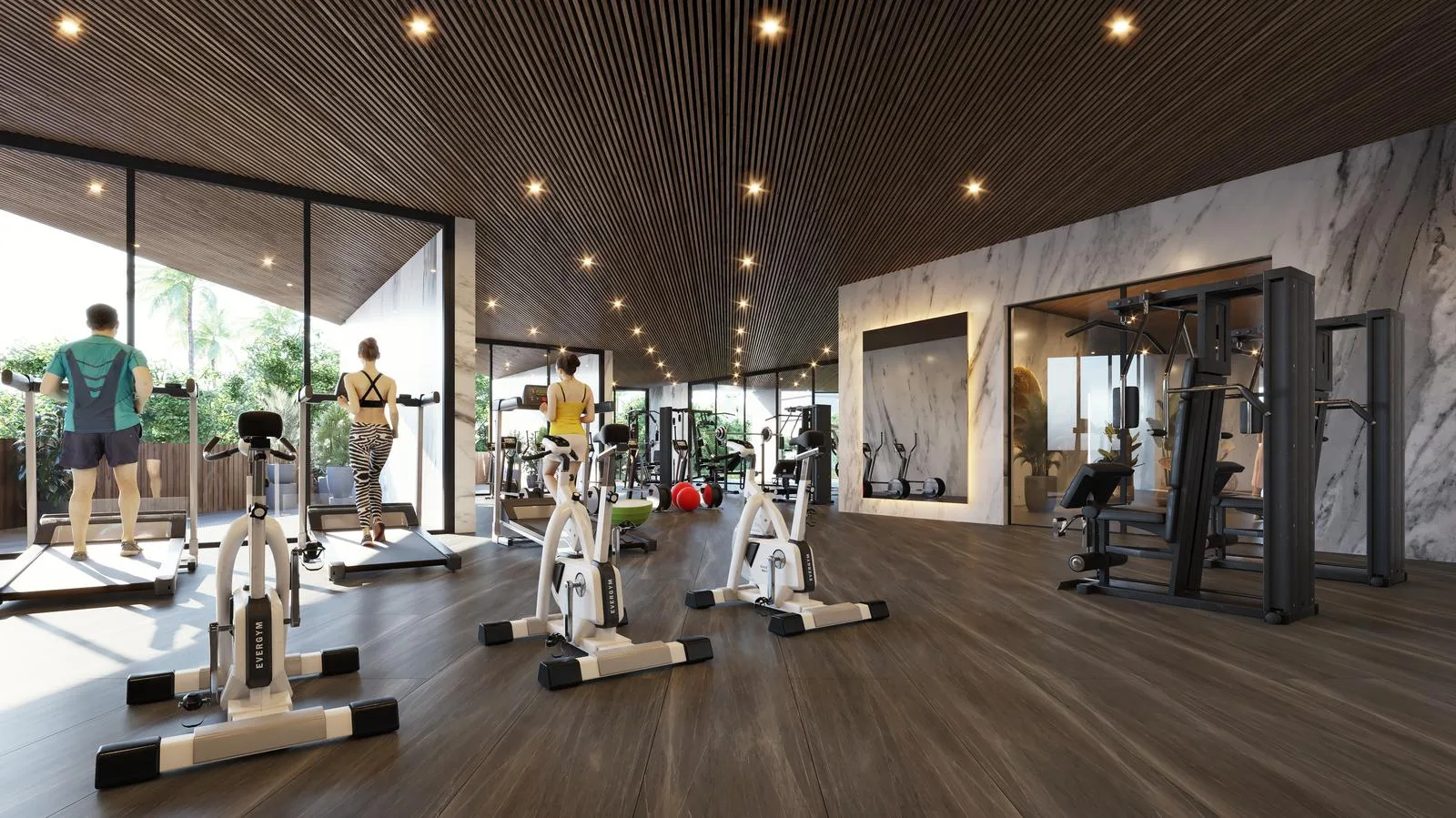 A creative coworking space is available for flexible work, along with covered parking. Lobby and garden lounges offer additional relaxation areas.