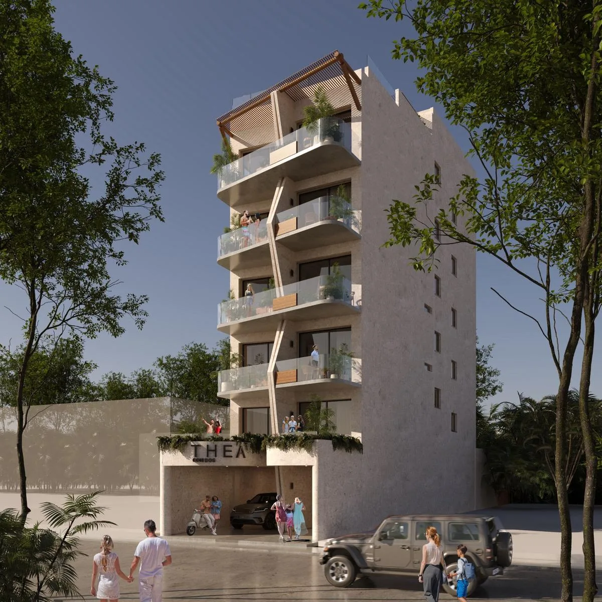The building contains only 12 apartments distributed across six different layouts, fostering a private and tranquil environment. The property provides a view of the Caribbean Sea.