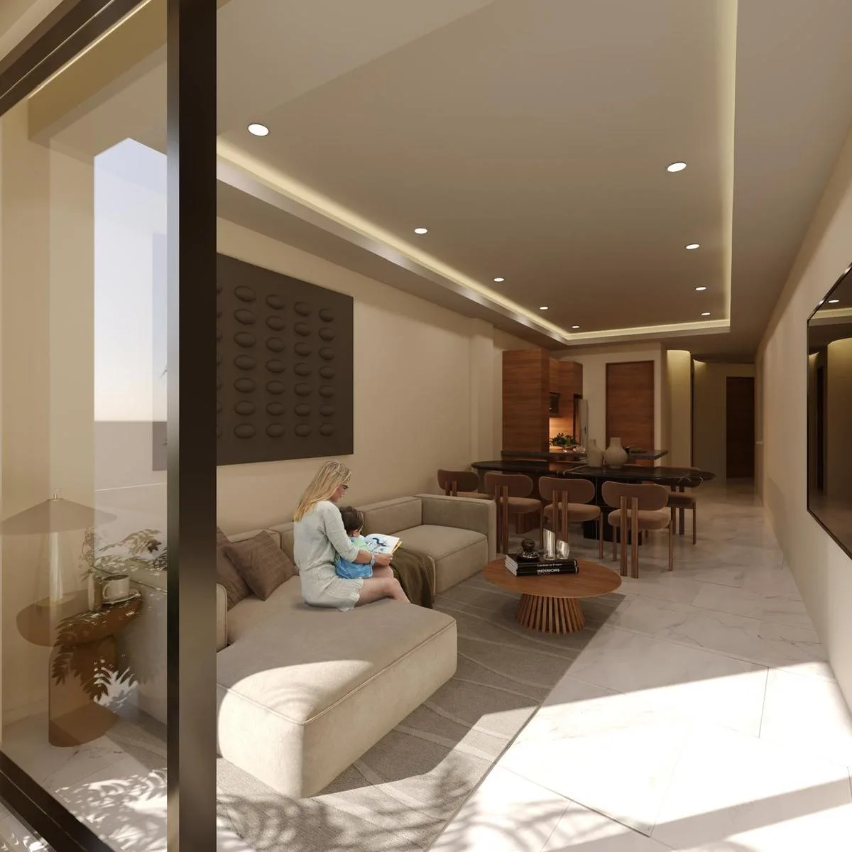 This modern 2-bedroom, 2-bathroom apartment offers a comfortable and functional living space. It features a spectacular terrace for enjoying views and breezes from the Caribbean Sea, and is located just a few blocks from the beach in Puerto Morelos.