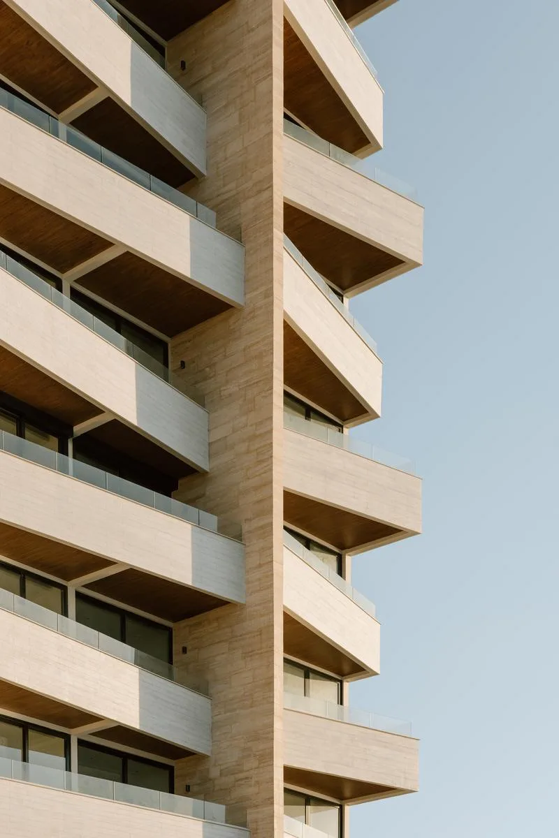 The property is part of a beachfront development featuring a private beach. Building amenities include a ground floor pool, a rooftop pool, a gym and yoga area, two social areas with grills, a multi-purpose room, a lobby with 24/7 security, an elevator, and private parking.