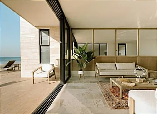 This apartment is located in Puerto Morelos, facing the Caribbean Sea in the Riviera Maya. The interior space measures 93. 25 square meters.