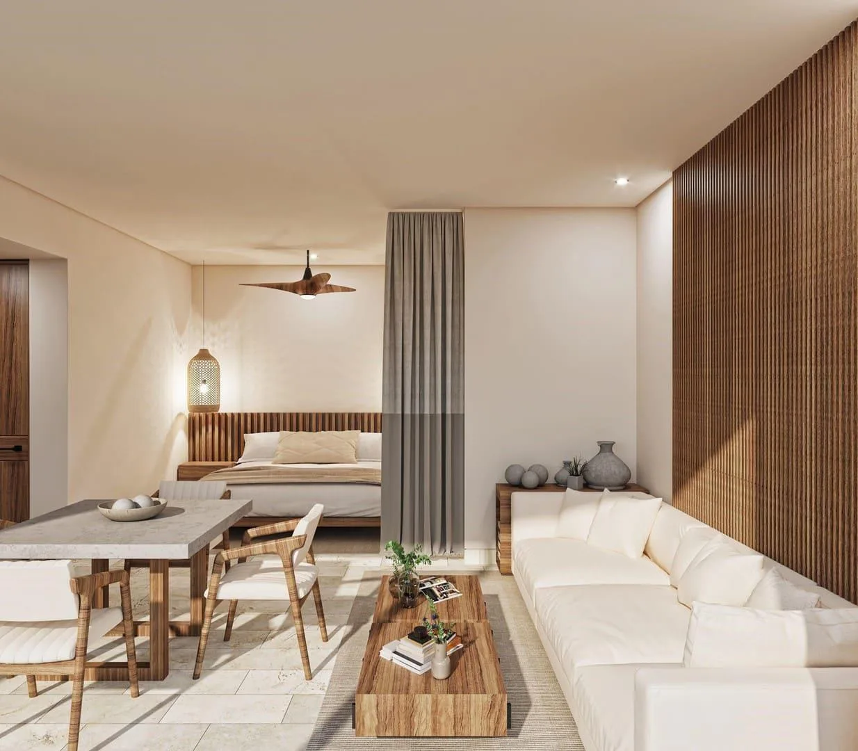 The condominium is located in the coastal area of Puerto Morelos, steps from the beach and near restaurants, cafes, and services. This quiet location offers quick access to the sea and the charm of the town center.