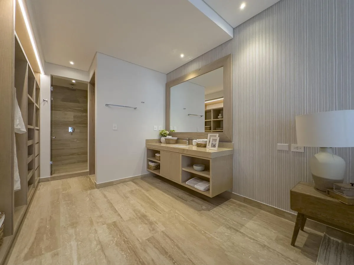 Luxury finishes include premium porcelain tile flooring. The kitchens are fully integrated with granite countertops. There is fine wood carpentry throughout. The bathrooms feature tempered glass shower enclosures. The units have expansive windows with anti-cyclonic aluminum frames and tintex glass. Low-consumption LED lighting is installed, as is air conditioning and ceiling fans.