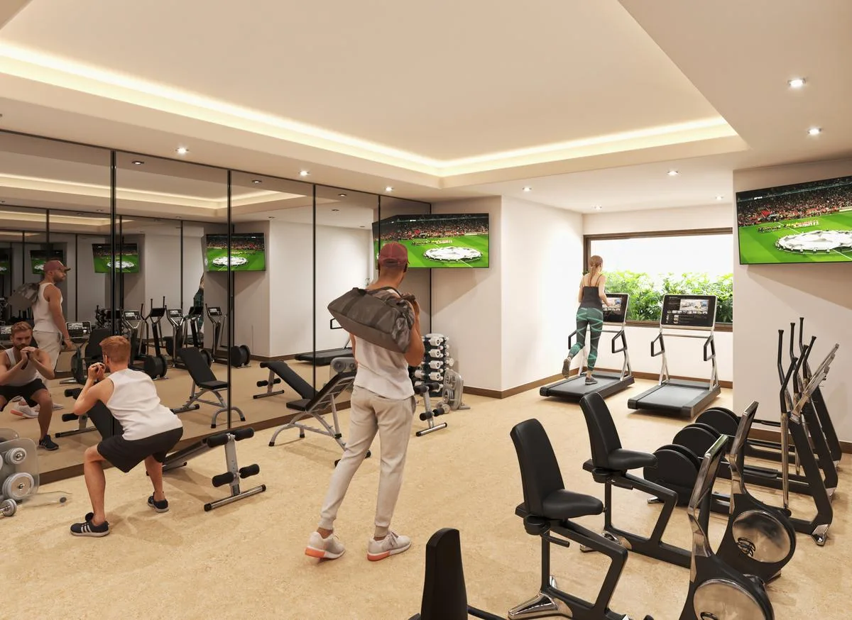 Exclusive amenities include a rooftop infinity pool with a pool bar and BBQ area. There is a lounge area, a coworking space, and a gym. The property features a bicycle area, a lobby with elevators, and parking with bike parking. Security is provided by CCTV and 24/7 surveillance. The development is pet-friendly, offers WiFi in common areas, and has direct access to the beach.