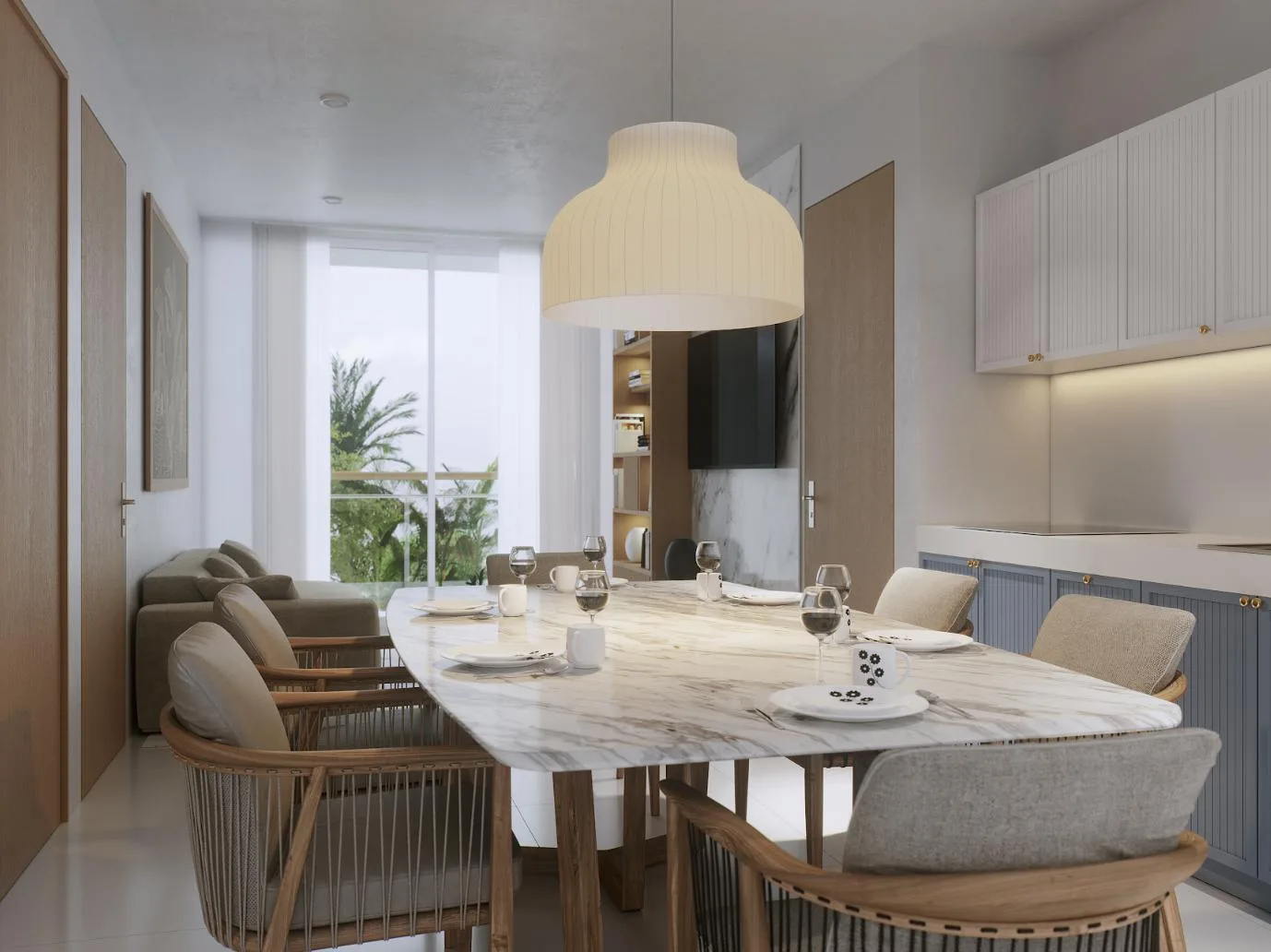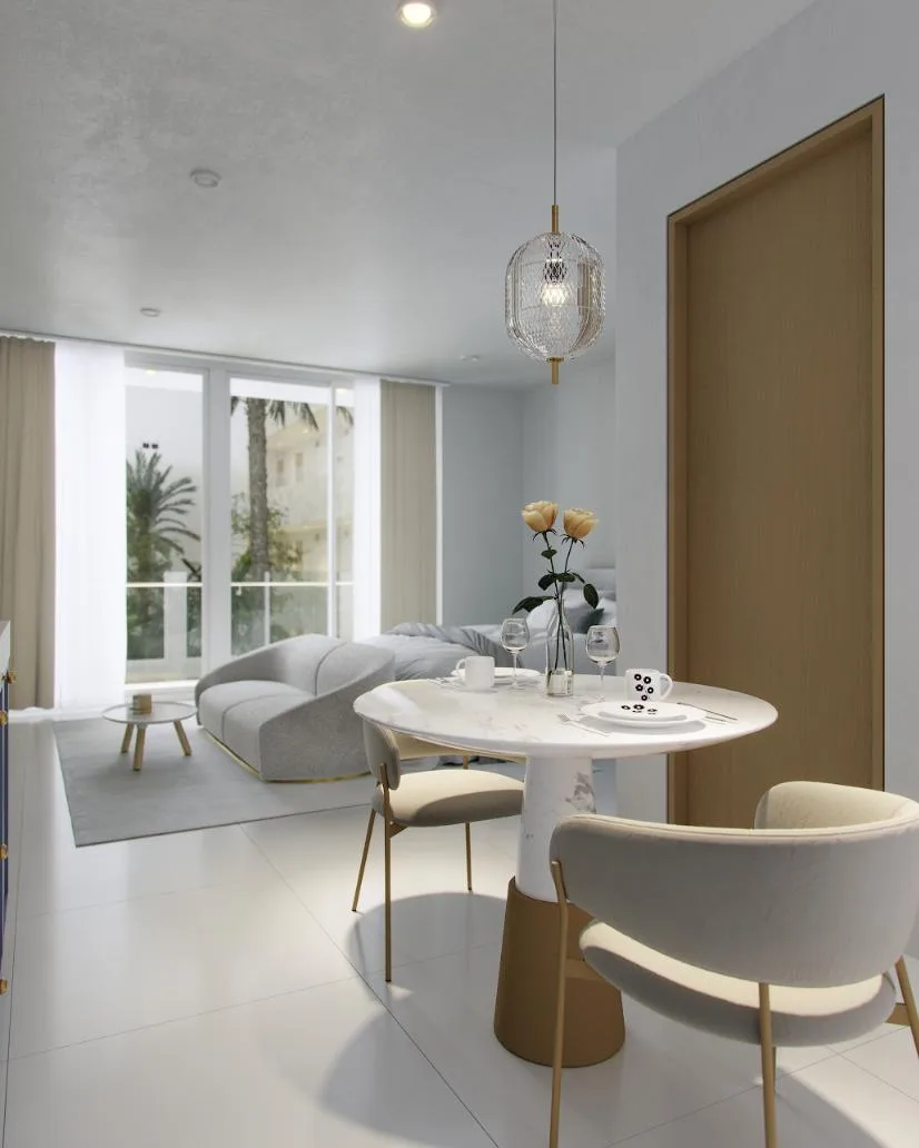 Additional amenities include a social area and solarium, a gym, a Kids Club, and a coworking space. Numerous units offer views of the sea.