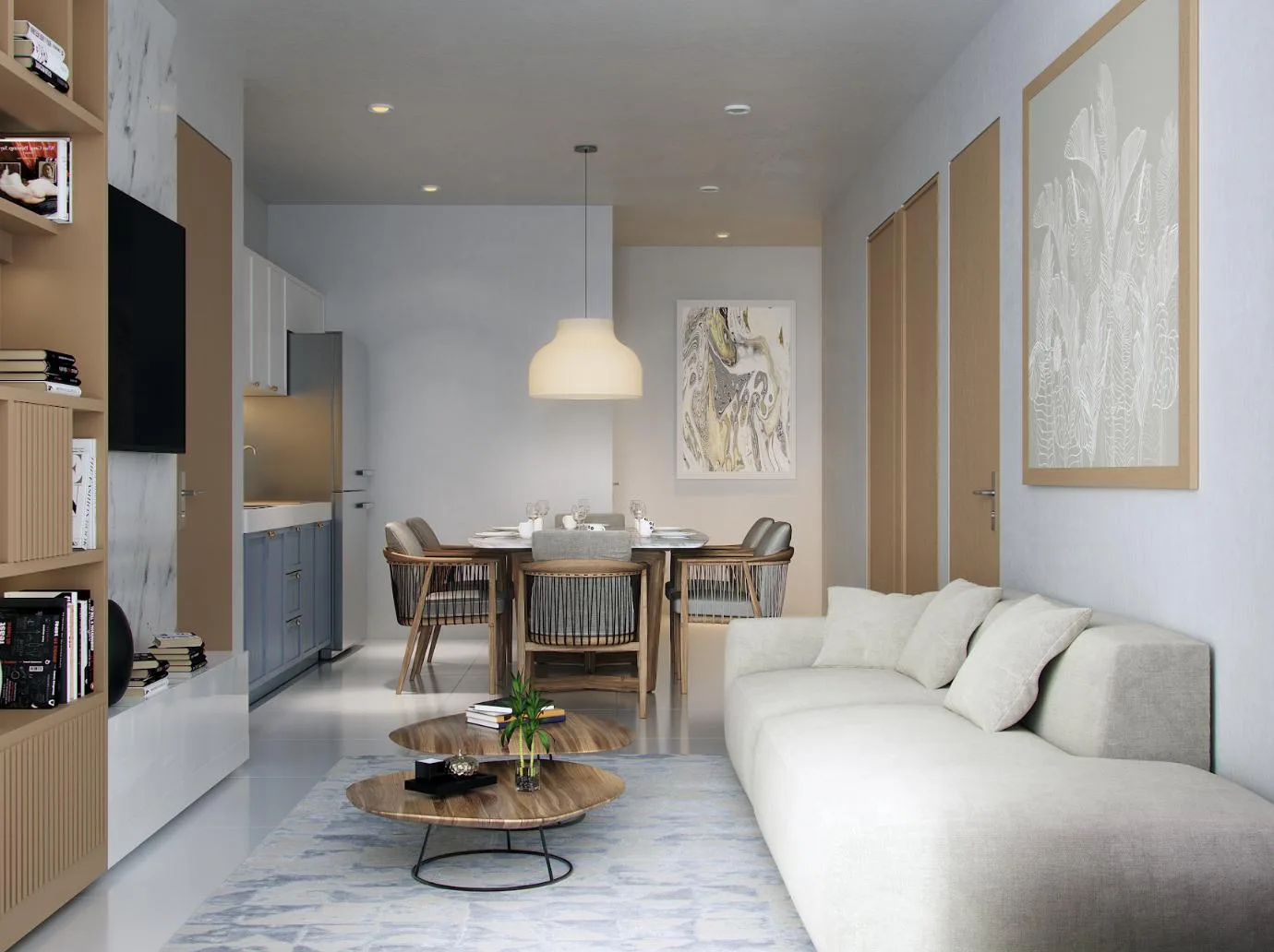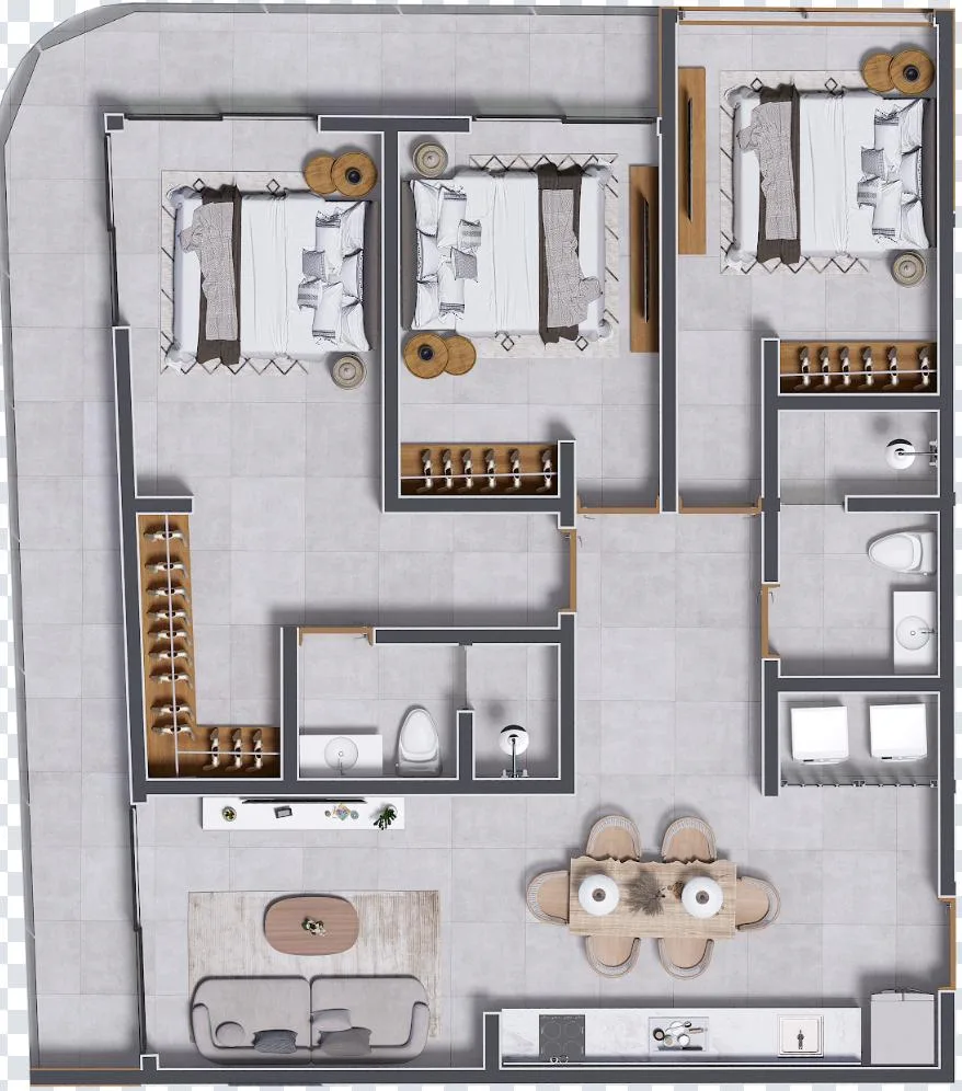 The development offers spacious and functional layouts including one, two, and three-bedroom apartments as well as lofts. Many units include balconies.