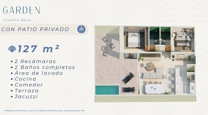 These apartments feature private jacuzzis and nine building amenities. They are located just steps from the sea and adjacent to a mangrove forest in Puerto Morelos.