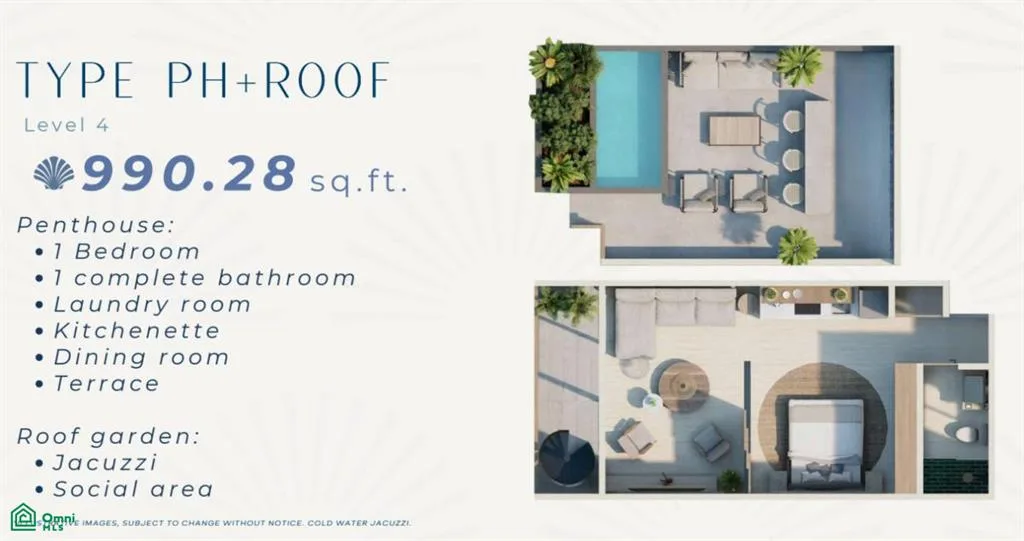 Each home includes a private terrace and a private Jacuzzi. The development is a small-scale complex designed for privacy. Rooftop amenities include a plunge pool, fire pit, BBQ grill, and sun deck. Building features include a fitness center, an elegant lobby, and 24-hour security.
