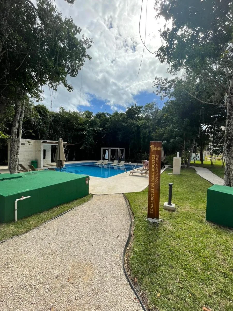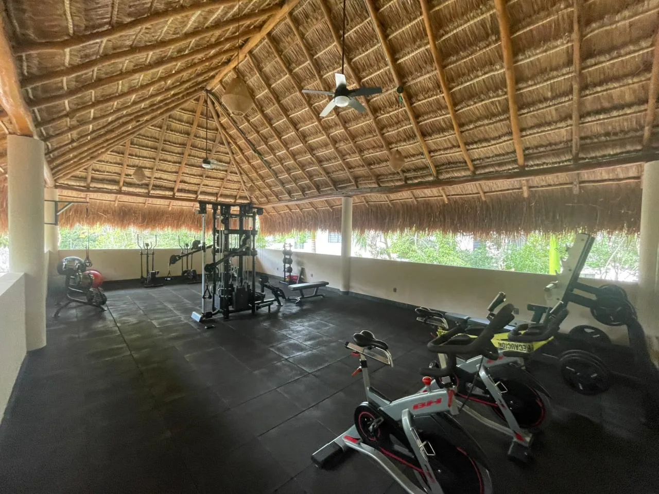 The condominium is new, spacious, and surrounded by vegetation. It is close to the town of Puerto Morelos and is a fully residential complex with 24/7 security. Amenities include a swimming pool, children's play area, extensive gardens, a barbecue area, a pet-friendly zone, a paddle court, a basketball court, and a yoga sector.