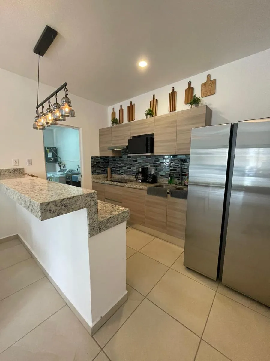 This beautiful apartment is located in the new Selva Escondida II condominium in Puerto Morelos. The unit is new, remodeled, and completely furnished and equipped. It includes a water heater, a two-door refrigerator, a dryer, and a washer. The furniture is made of native wood and everything is in excellent condition.