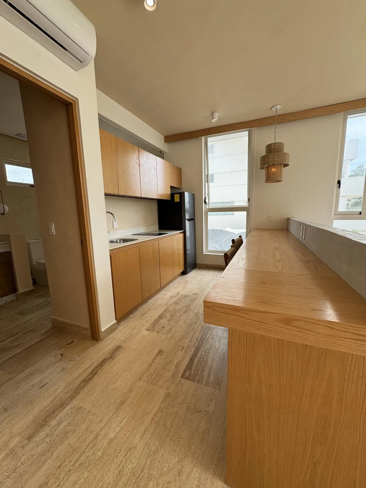 This furnished studio in Puerto Morelos measures 55 square meters and is located just a few steps from the sea. It features well-distributed spaces with modern finishes, designed for comfort and functionality. The property is situated in an area with high tourist demand.