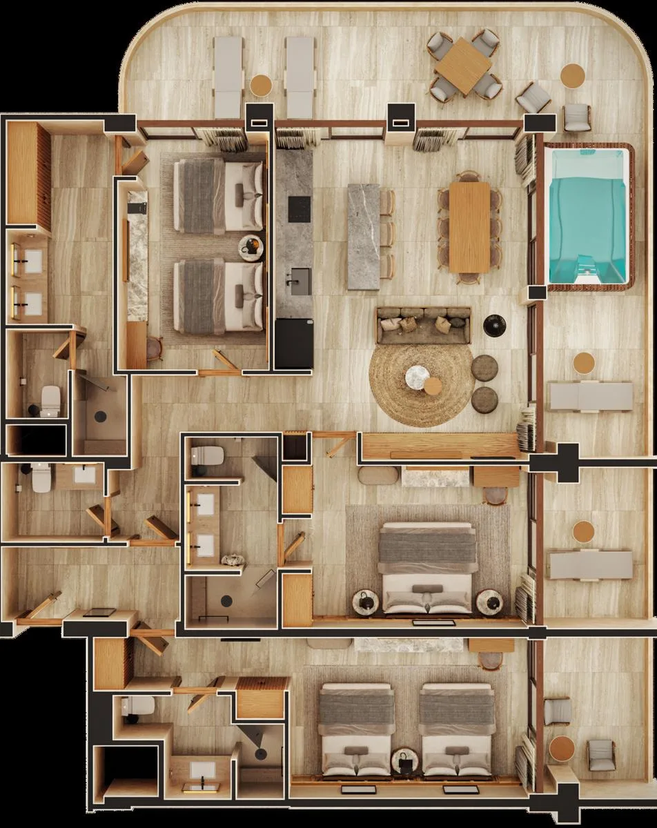 Luxury 3-Bedroom Residences with Plunge Pools and Terraces in Puerto Morelos
