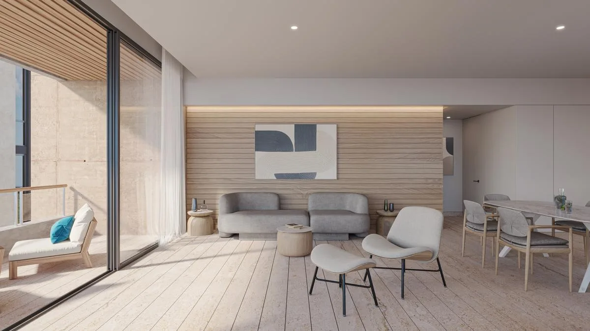 The property is designed with sustainable criteria and features natural materials, cross ventilation, and energy efficiency. Unit Model 2 BR A offers a construction area from 143 square meters, with 116 square meters of interior space and from 27 square meters of exterior space.