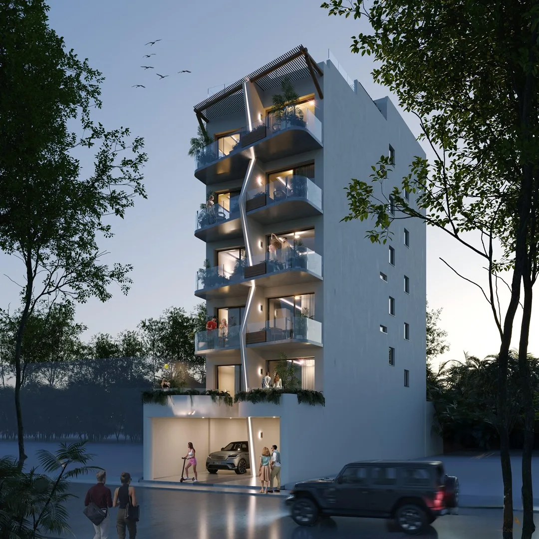 This development in Puerto Morelos offers twelve condominiums distributed across six unique layouts. The range includes one-bedroom apartments to spacious two-bedroom residences, some featuring a private jacuzzi. Each unit combines functionality and elegance with premium finishes such as marble, granite, and tzalam wood.
