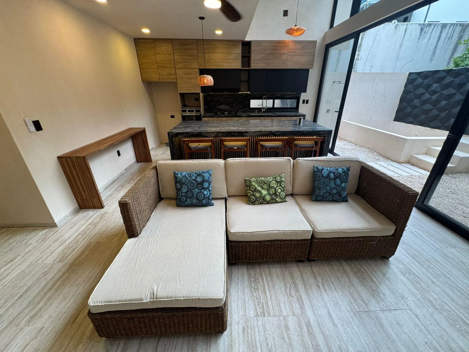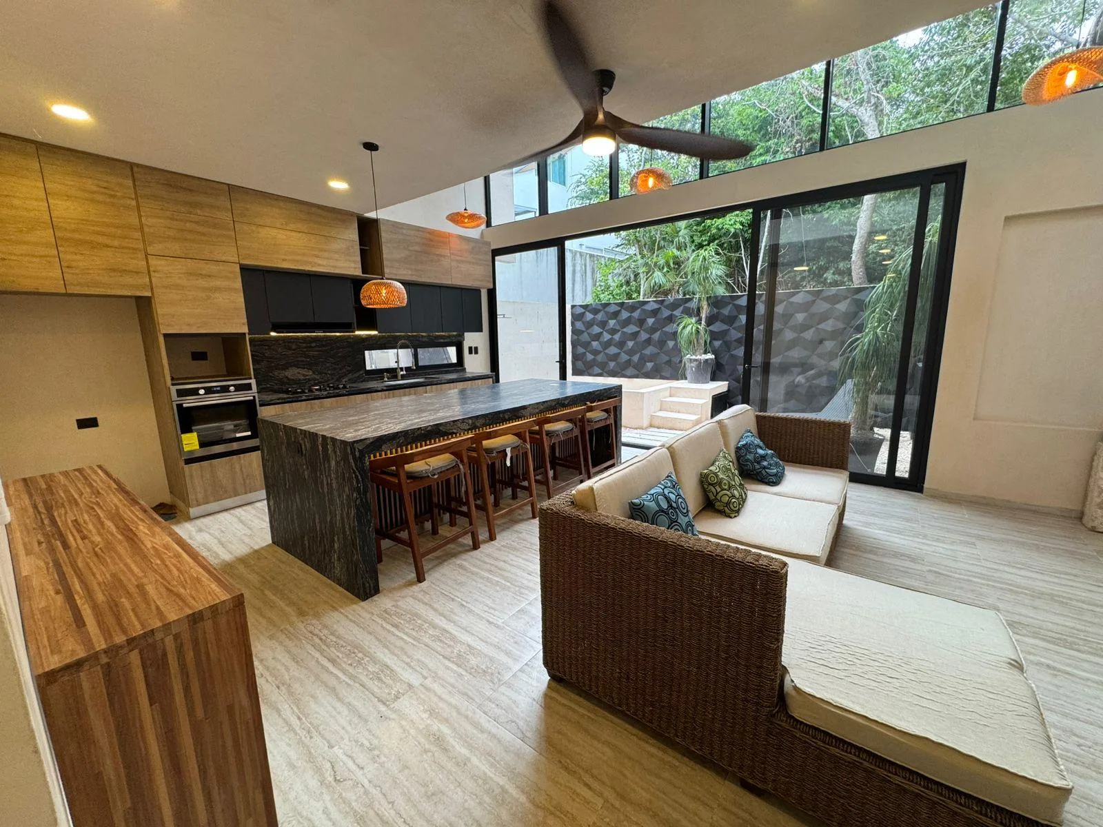 The loft features a vanguardist design with integrated living spaces. Its open concept integrates the living room, kitchen, and terrace as the heart of the home. The intelligent layout maximizes space and allows for freedom of movement. The contemporary style blends local architecture with modern touches, and the spaces are designed to create an intimate and cozy atmosphere.