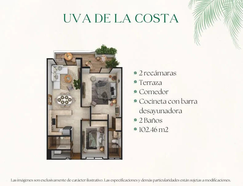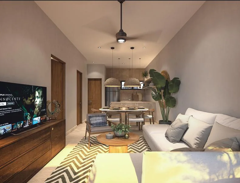 This condominium property is situated just steps from the sea in Puerto Morelos. The location is approximately 20 minutes from Cancun International Airport and 500 meters from the Arrecife National Park, which forms part of the world's second-largest barrier reef.