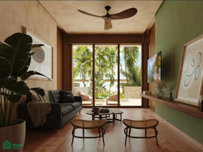 The residence is situated within the natural setting of Puerto Morelos. The architecture is designed to harmonize with the natural environment, offering a relaxed lifestyle directly facing the sea.
