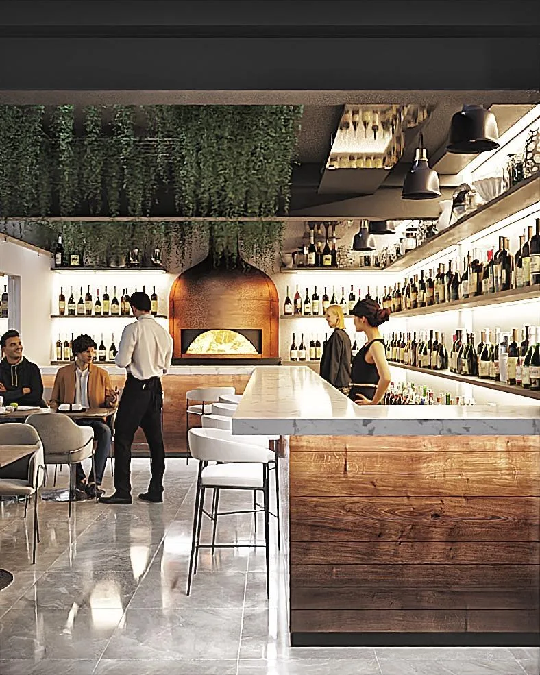 Building amenities include a reception area, an elevator, an infinity pool, a rooftop terrace, a lounge area, and a restaurant. Services include concierge and housekeeping. The property also has an agreement with a beach club.