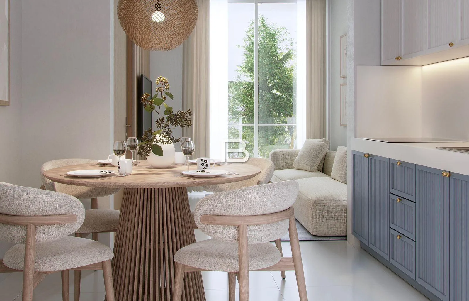The unit offers 31 square meters of interior space and features a private terrace with direct swim-up pool access. It is delivered fully equipped.