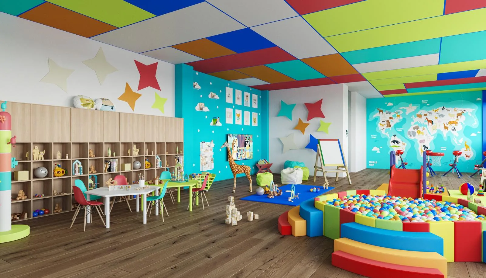 Additional amenities include The Fire Pit gathering area, an amphitheater, an outdoor cinema, a kayak zone, and a paddle board club. The property incorporates a smart home automation system. Services include a beauty center, a medical clinic, a gym, and themed restaurants. For entertainment, there is a Hall of Games for adults and a Kids Club. The property provides parking and 24/7 security with CCTV.