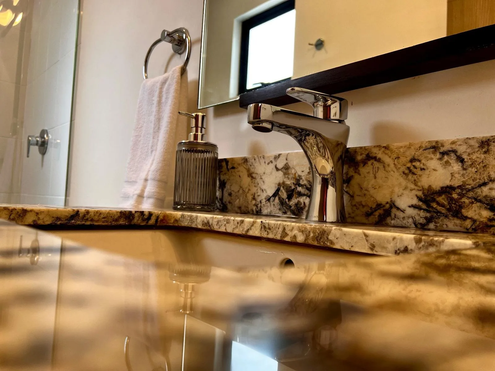 On the second level, there is an exclusive apartment with a breakfast bar and a balcony, designed for privacy and comfort.
