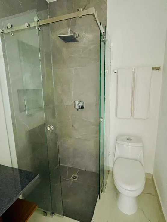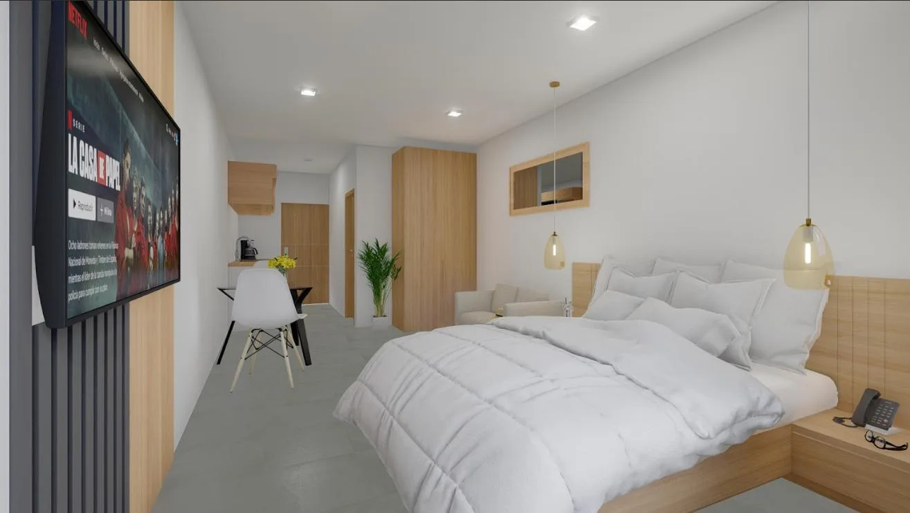 The property provides access to a rooftop infinity pool, a bar restaurant, and a private beach club. It operates under a Condo Hotel model and includes 24-hour reception and security.