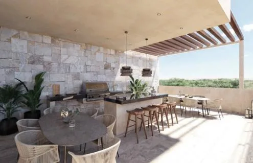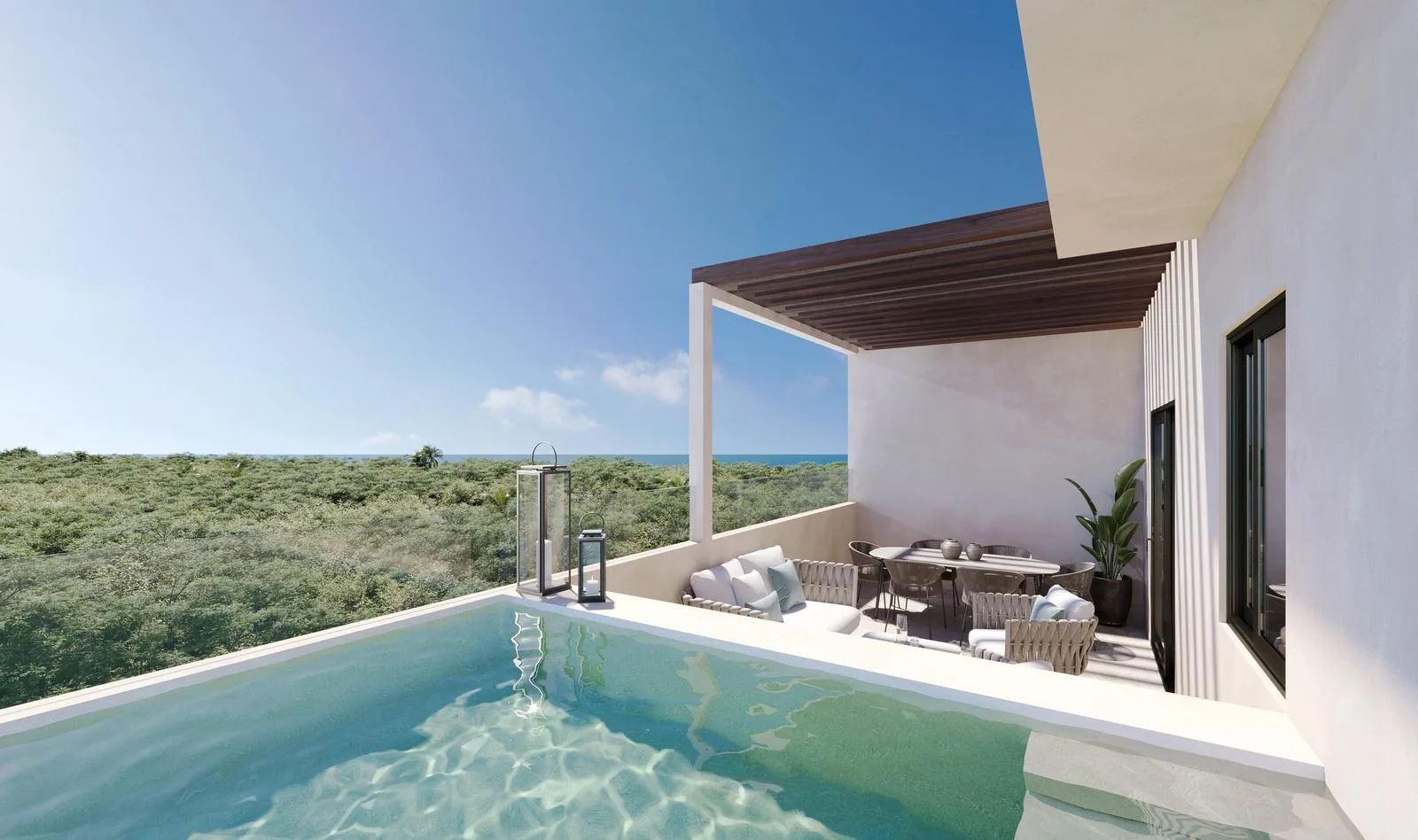 Two-Bedroom Apartment for Sale in Puerto Morelos with Rooftop Pool and Sea Views