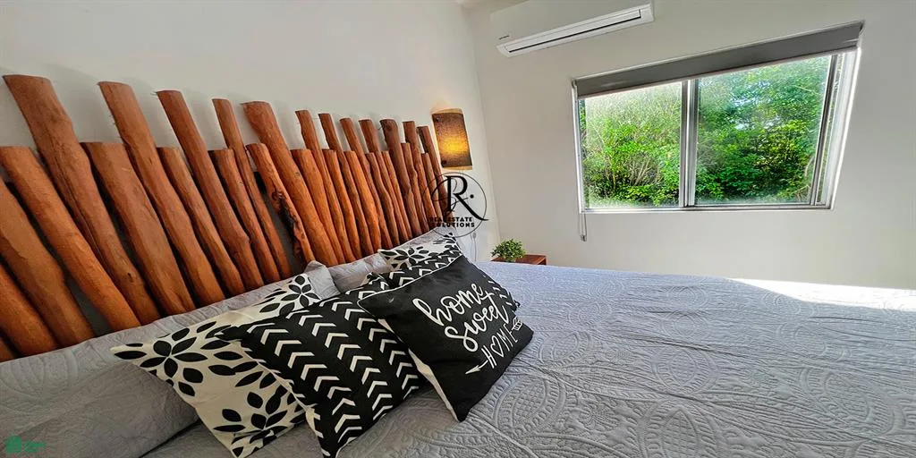 This home is located in the serene Puerto Marino Residential community within Quintana Roo's peaceful Puerto Morelos area. It offers a tranquil lifestyle with direct access to lush green spaces and beautiful jungle views.