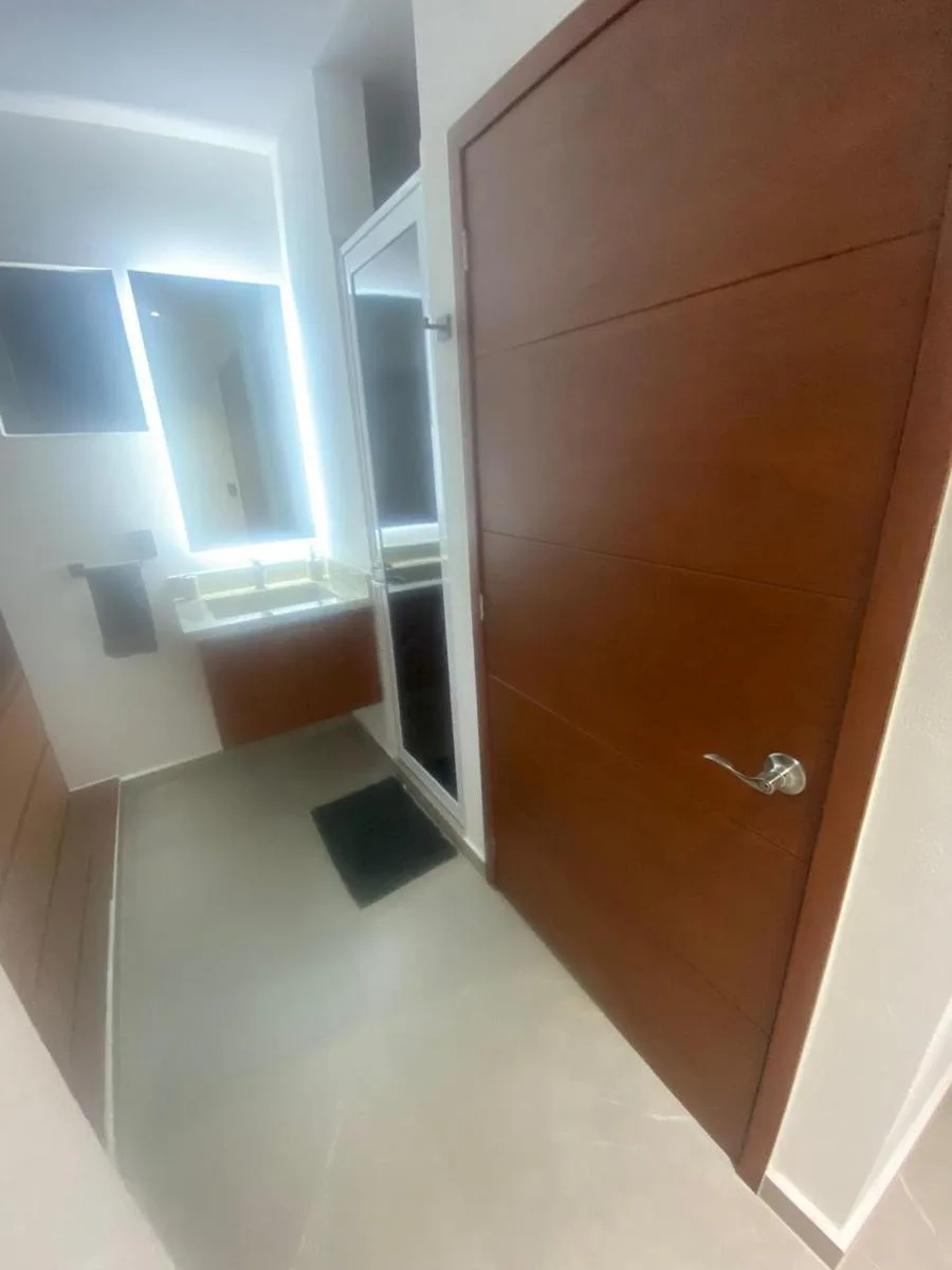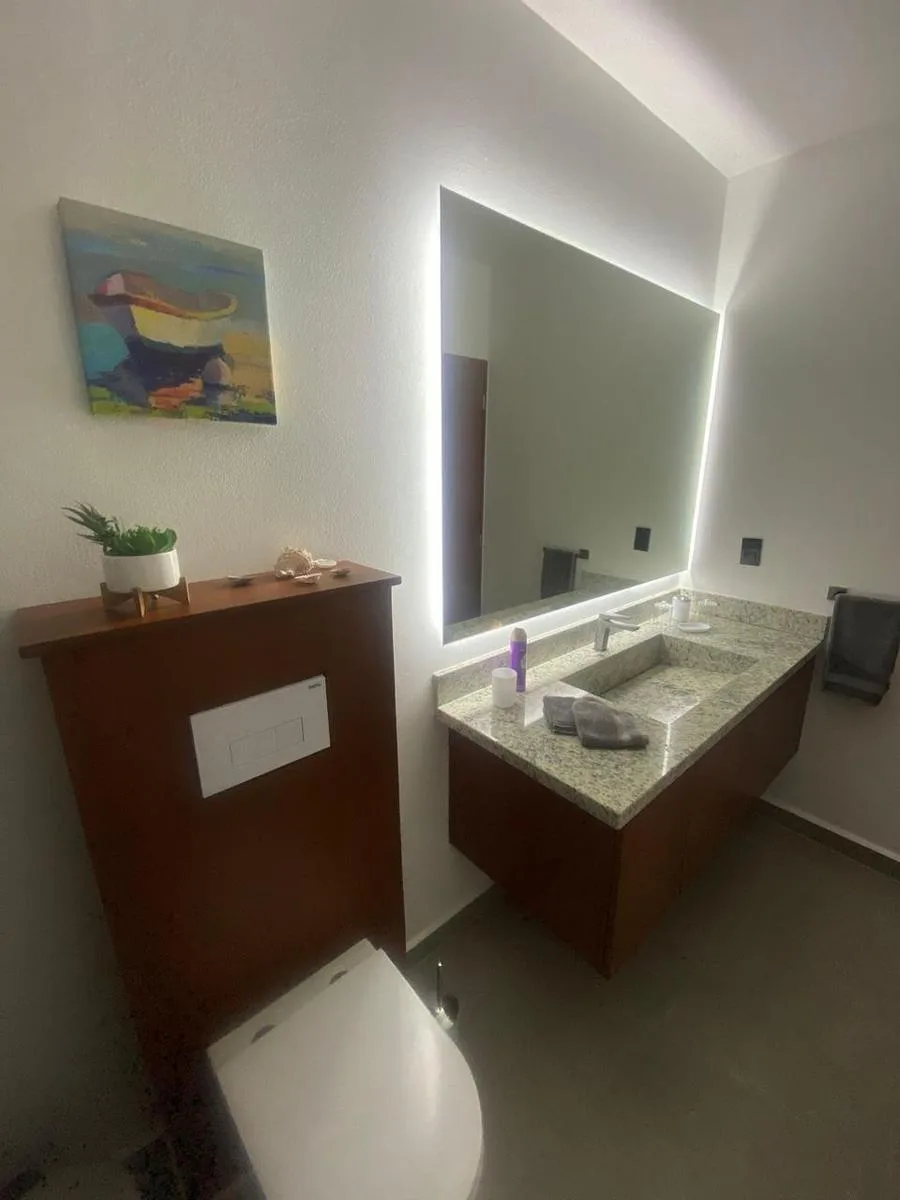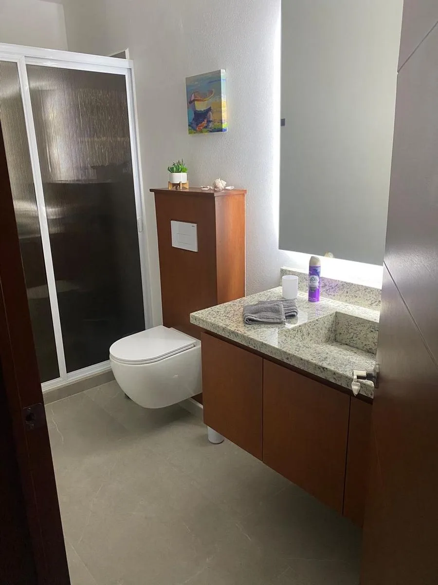 The first level includes a TV room and a terrace. There is a cleaning supply closet and three additional bedrooms, each with a closet and en-suite bathroom. The home is equipped with air conditioning units and ceiling fans. The property benefits from a private water cistern and solar panel installation.