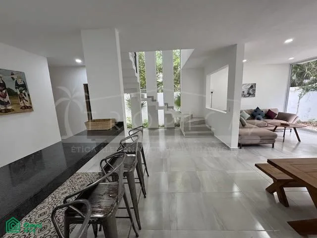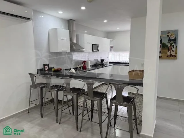 This furnished rental home is located in the Aldea Kiin residential community in Puerto Morelos and offers 177 m² of living space. The property features three bedrooms on a quiet street.