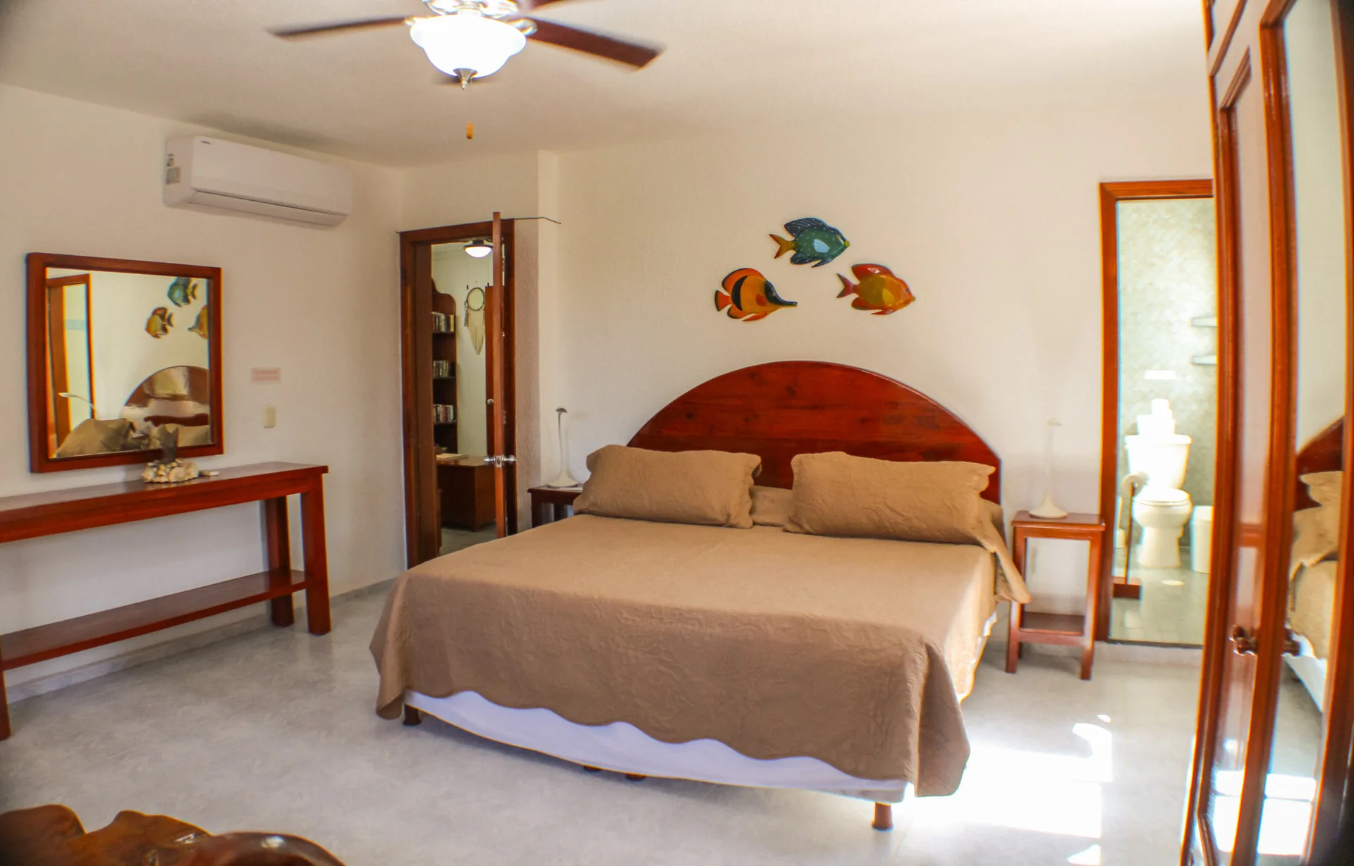 The property offers five bedrooms, each with its own private bathroom and air conditioning. Locally crafted furniture provides a warm, authentic style to the home's character.